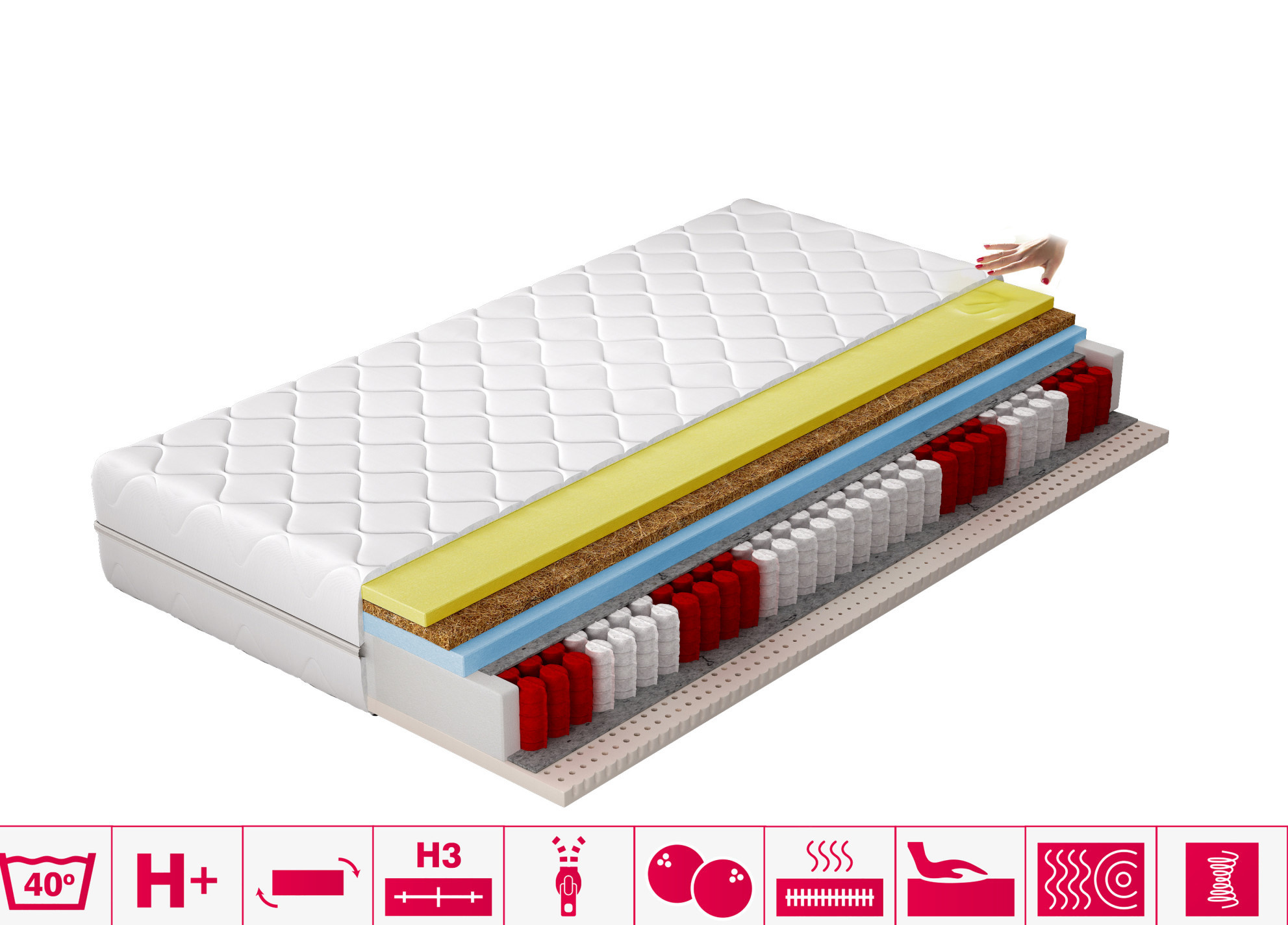 Pohodlný nočný spánok je receptom na úspešný deň, preto si uvedomujeme dôležitosť výberu dokonalej matraca podľa vašich preferencií. Termoelastický matrac Sola je ideálnou voľbou pre ľudí, ktorí si cenia kvalitný spánok. Matrac Sola sa skladá z taštičkových pružín, vďaka ktorým matrac nevlní ani nevibruje, a troch typov peny. Latexová pena na jednej strane a vysoko flexibilná HR pena a Visco pena na druhej, oddelené kokosovou doskou, ktorá zvyšuje tvrdosť matraca, celok je doplnený snímateľným poťahom.