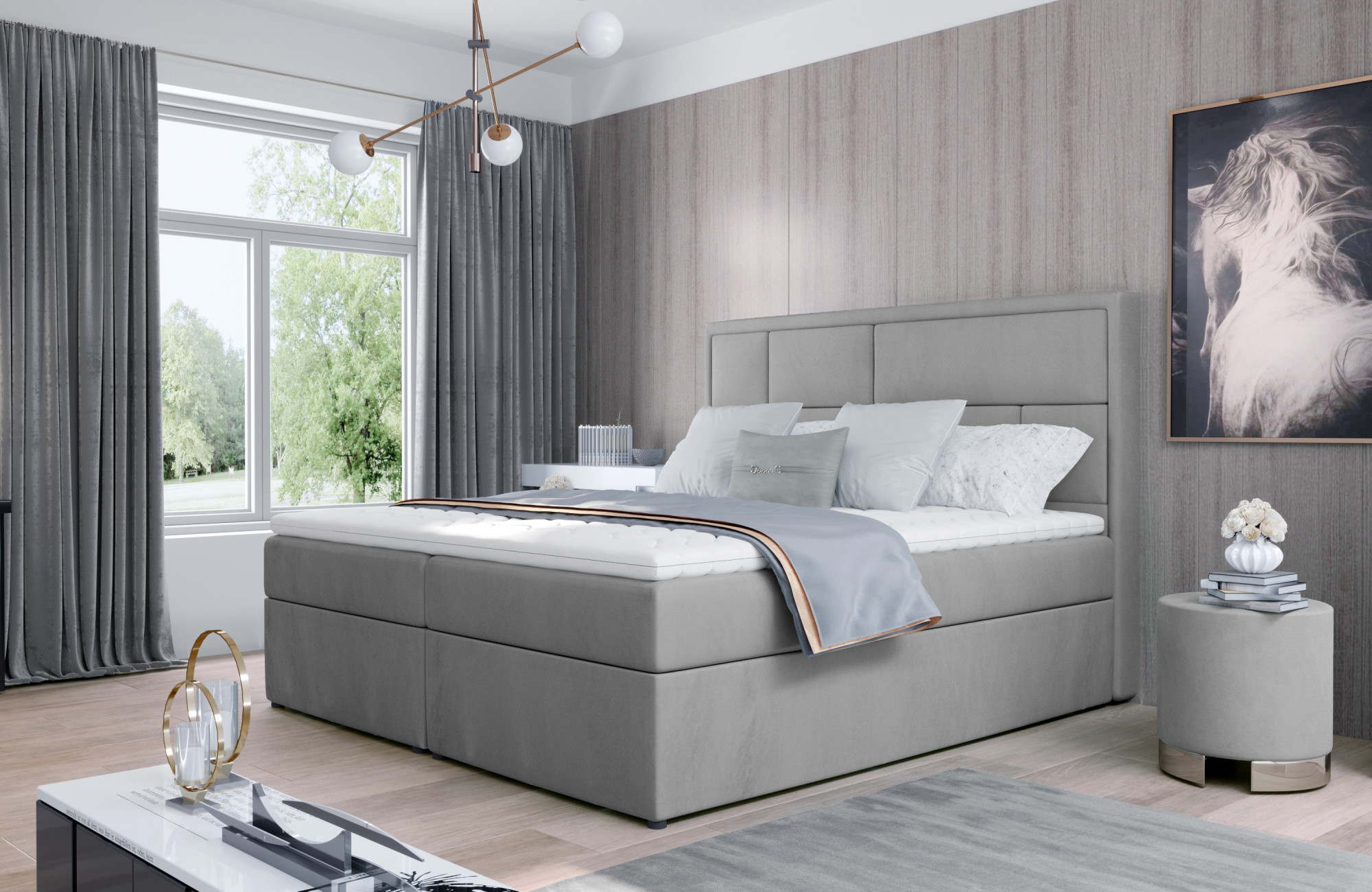 Meron je vkusná, elegantná, dokonale mäkká a pohodlná kontinentálna posteľ typu boxspring v modernom klasickom štýle, ktorá je k dispozícii v troch veľkostiach: 140/160/180 x 200 cm. Výnimočné pohodlie je umocnené vysokým 53 centimetrovým sedadlom a výplňou postele. Bonellová matrac a pena T25 poskytujú užívateľovi nábytku najvyšší komfort a dokonale stabilizujú polohu tela počas odpočinku. Takéto riešenie zaručuje pohodlný odpočinok pre každého, pretože zdravý spánok je predsa dobrý spánok! Okrem značného pohodlia stojí za zmienku aj spracovanie jednotlivých prvkov modelu Meron. Vysoká opierka hlavy, prešívaná do tvaru nepravidelných obdĺžnikov, je nielen mäkkou, pohodlnou a neoceniteľnou oporou, ale aj zaujímavou dekoráciou spálne. Vďaka dvom priestranným úložným boxom na posteľnú bielizeň je naša boxspringová posteľ nielen funkčným doplnkom bytu, ale aj vlastnou oázou pokoja, čo robí používanie takejto postele skutočným potešením. Stojí za to mať takú posteľ ako Meron vo vašom byte - spokojnosť zaručená.