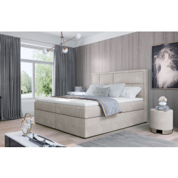 Meron je vkusná, elegantná, dokonale mäkká a pohodlná kontinentálna posteľ typu boxspring v modernom klasickom štýle, ktorá je k dispozícii v troch veľkostiach: 140/160/180 x 200 cm. Výnimočné pohodlie je umocnené vysokým 53 centimetrovým sedadlom a výplňou postele. Bonellová matrac a pena T25 poskytujú užívateľovi nábytku najvyšší komfort a dokonale stabilizujú polohu tela počas odpočinku. Takéto riešenie zaručuje pohodlný odpočinok pre každého, pretože zdravý spánok je predsa dobrý spánok! Okrem značného pohodlia stojí za zmienku aj spracovanie jednotlivých prvkov modelu Meron. Vysoká opierka hlavy, prešívaná do tvaru nepravidelných obdĺžnikov, je nielen mäkkou, pohodlnou a neoceniteľnou oporou, ale aj zaujímavou dekoráciou spálne. Vďaka dvom priestranným úložným boxom na posteľnú bielizeň je naša boxspringová posteľ nielen funkčným doplnkom bytu, ale aj vlastnou oázou pokoja, čo robí používanie takejto postele skutočným potešením. Stojí za to mať takú posteľ ako Meron vo vašom byte - spokojnosť zaručená.
