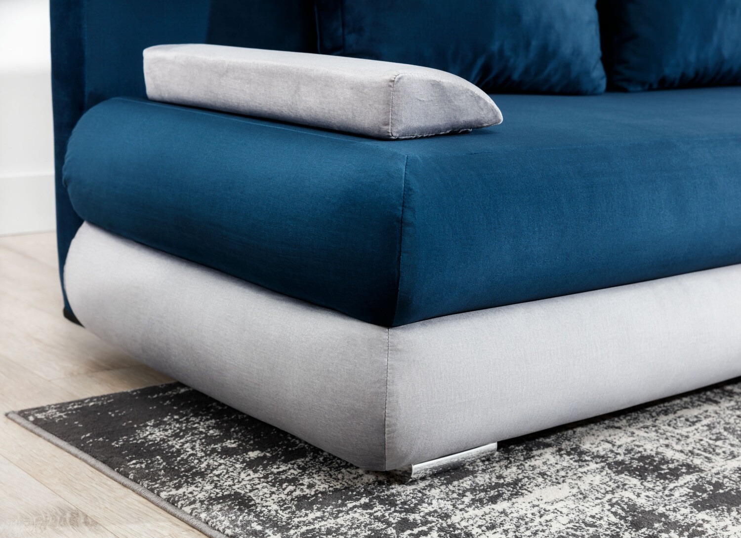 Milo je dokonalou kombináciou klasiky a moderny s rozmermi 213 x 95 x 90 cm. Tento typ pohovky možno určite prispôsobiť akémukoľvek typu interiéru. Jednoduchý dizajn, osvedčená, pevná konštrukcia a dôraz na detaily - taká je naša pohovka Milo, ktorá je nielen ideálna počas dňa, ale môže tiež slúžiť ako dokonalá posteľ v noci. Tento formulár má rozmery: 200 x 140 cm. Naša pohovka má tiež priestranný úložný priestor na lôžkoviny umiestnený v boxe. Pohodlie používania je tiež ovplyvnené jeho funkčnosťou - sedadlo bolo vytvorené z kombinácie odolného bonelu a pružnej peny T25. Ďalšie výhody tohto modelu zahŕňajú: priestranné vankúše, dvojúrovňové sedadlo, lesklé chrómové nohy, opierky rúk, ktoré slúžia aj ako opierky hlavy, a skutočnosť, že je k dispozícii v mnohých farebných variantoch. Milo je rozhodne dobrá voľba, ktorá zaujme svojou jednoduchosťou a minimalizmom.