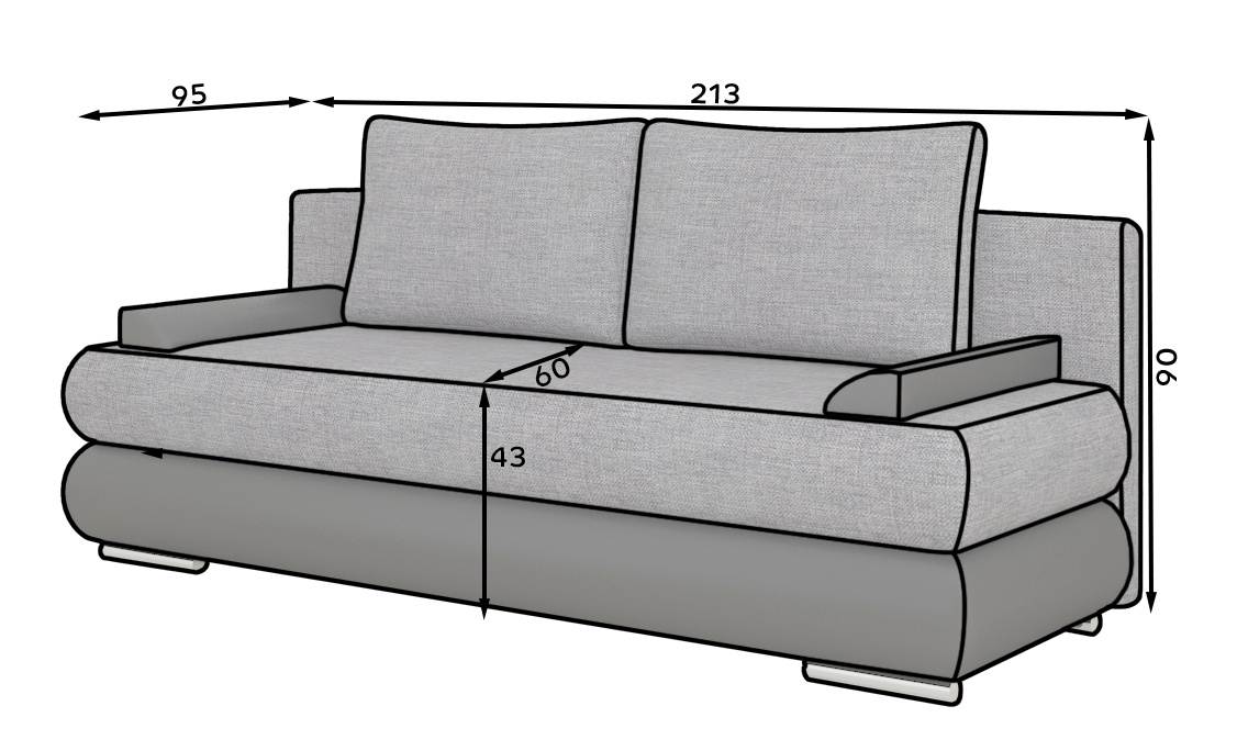 Milo je dokonalou kombináciou klasiky a moderny s rozmermi 213 x 95 x 90 cm. Tento typ pohovky možno určite prispôsobiť akémukoľvek typu interiéru. Jednoduchý dizajn, osvedčená, pevná konštrukcia a dôraz na detaily - taká je naša pohovka Milo, ktorá je nielen ideálna počas dňa, ale môže tiež slúžiť ako dokonalá posteľ v noci. Tento formulár má rozmery: 200 x 140 cm. Naša pohovka má tiež priestranný úložný priestor na lôžkoviny umiestnený v boxe. Pohodlie používania je tiež ovplyvnené jeho funkčnosťou - sedadlo bolo vytvorené z kombinácie odolného bonelu a pružnej peny T25. Ďalšie výhody tohto modelu zahŕňajú: priestranné vankúše, dvojúrovňové sedadlo, lesklé chrómové nohy, opierky rúk, ktoré slúžia aj ako opierky hlavy, a skutočnosť, že je k dispozícii v mnohých farebných variantoch. Milo je rozhodne dobrá voľba, ktorá zaujme svojou jednoduchosťou a minimalizmom.