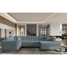 Montez je priestranná, pohodlná a čalúnená rohová pohovka o rozmeroch 340 x 180 x 93 cm. Tento nábytok v tvare U je ideálne vhodný pre veľké miestnosti. Má pohodlné, mäkké sedadlo vyrobené z odolnej vlnitej pružiny a tiež z flexibilnej peny T30, ktorá je odolná proti poškodeniu, škrabancom a preliačinám. Naša rohová pohovka je multifunkčná, pretože ju možno veľmi jednoducho premeniť na posteľ. Po rozložení kusu nábytku pomocou DL automatu získame až 275 x 120 cm plochy pre nočný odpočinok. Medzi charakteristiky rohovej pohovky Montez môžeme zahrnúť: vysoké, 51 centimetrov vysoké sedadlo, elegantné prešívanie, vysoké, 13 centimetrov oceľové nohy, rovnako ako množstvo dostupných farebných variantov. Produkt je dostupný vo všetkých látkach z kolekcie ELTAP. Montez je veľmi vkusná, elegantná a predovšetkým pohodlná rohová pohovka, ktorá sa dokonale hodí do interiéru každého väčšieho obývacieho pokoja. Stojí za to mať taký multifunkčný kus nábytku, ktorý nielen oživí mnoho miestností, ale bude v nich slúžiť po mnoho rokov.