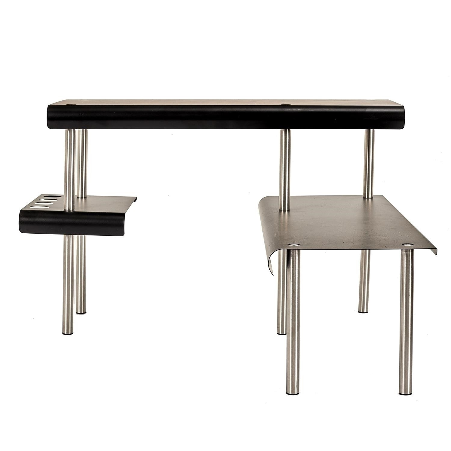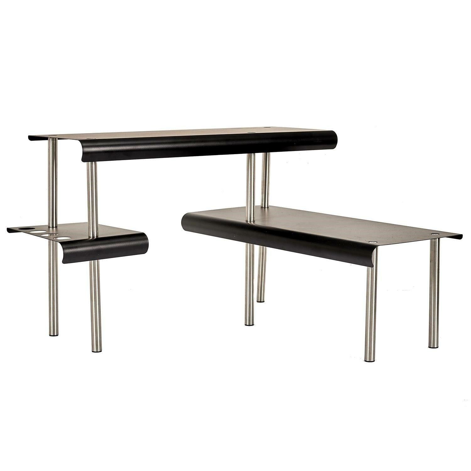 Nástenná polica Angle je spôsob, ako získať ďalší úložný priestor v kuchyni. Celá konštrukcia je vyrobená z nehrdzavejúcej ocele, police sú navyše natreté čiernou farbou. Polička Angle má špeciálne vyrezané otvory na lyžice alebo iné kuchynské náradie. Umiestnená na kuchynskej linke ti umožní usporiadať kuchynské náradie alebo korenie. Počet kartónov: 1 Rozmery kartónov: 51x20,5x4,5cm