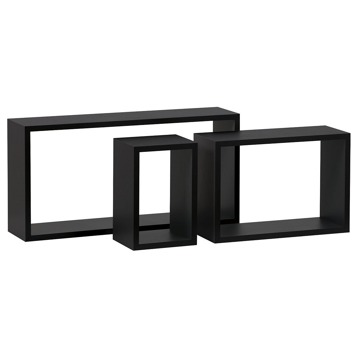 Nástenná polica, sada 3 kusov, MDF, matná čierna, balená v ochrannej fólii