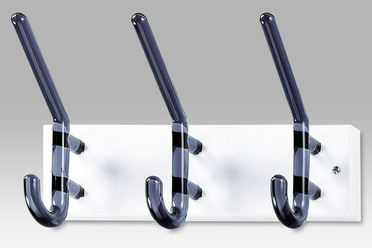 Nástenný vešiak - 3 háčiky, biely kov, dymové akrylové háčiky