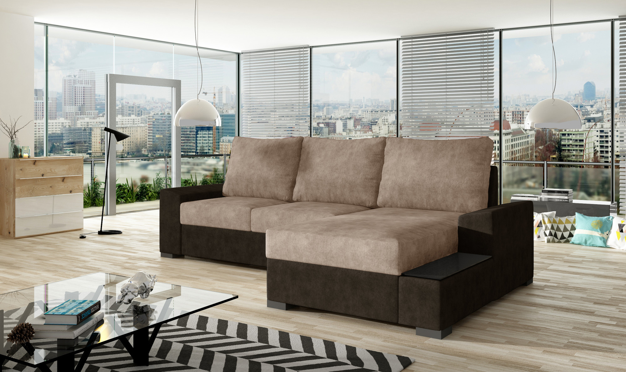 Negro je pohodlný, jednoduchý kus nábytku, ktorý má klasické usporiadanie a formu pre rohové pohovky, ale vyniká svojím štýlovým prevedením, drevenými nohami a priestrannými vankúšmi. Kus nábytku o rozmeroch 245 x 160 x 90 cm je vyplnený vlnitou pružinou a penou T30, ktoré používateľovi poskytujú maximálne pohodlie každý deň. Vďaka možnosti rozloženia rohovej pohovky s funkciou DL sa nábytok premení na posteľ s rozmermi 205 x 145 cm. Je tiež vybavený priestranným úložným priestorom. Ďalšie výhody tohto modelu zahŕňajú: rozšírený otoman v štýle s policou zdobenou sklom, rovnako ako ďalší priestor pre drobnosti a obľúbené knihy. Negro je rohová pohovka, ktorá je pohodlná a praktická. Bude to určite najvhodnejšia voľba pre tých, ktorí hľadajú originálne riešenie.