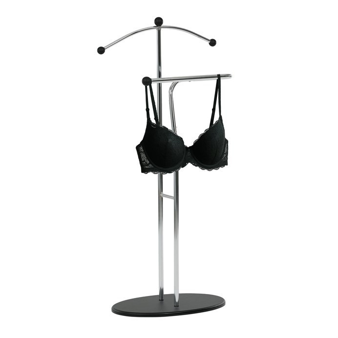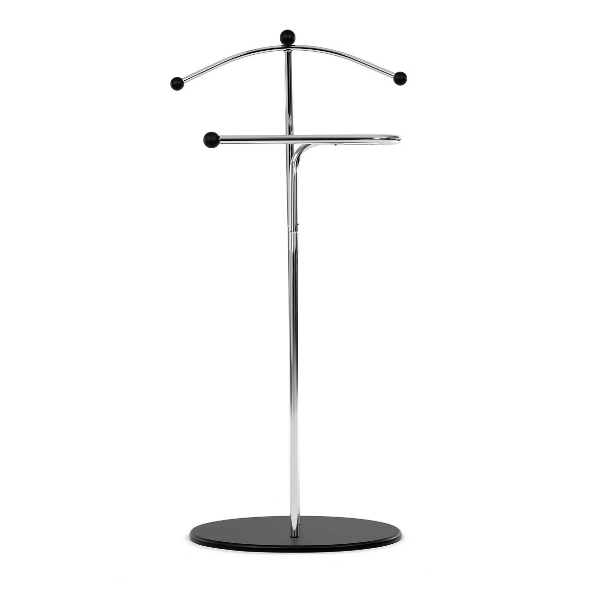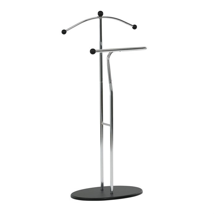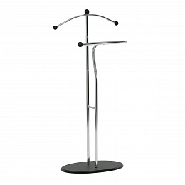 Němý sluha 83213 CR(BK) značky Autronic je praktický bytový doplněk s výškou 110 cm, který kombinuje pevnost kovové konstrukce s elegantním designem. Rám je vyroben z chromovaného kovu, který zajišťuje vysokou odolnost proti opotřebení a stabilitu, zatímco základna je z masivního kaučukovníku s černým mořením, což dodává produktu robustní a zároveň estetický vzhled. Konstrukce nabízí několik ramínek zakončených černými plastovými koncovkami, které umožňují bezpečné zavěšení oděvů, obleků či doplňků bez poškození materiálu. Pevná základna zajišťuje stabilitu i při větším zatížení a díky kompaktním rozměrům je vhodný do ložnic, šaten nebo kanceláří. Povrchová úprava chromu a černého moření podtrhuje moderní styl a snadnou údržbu produktu.