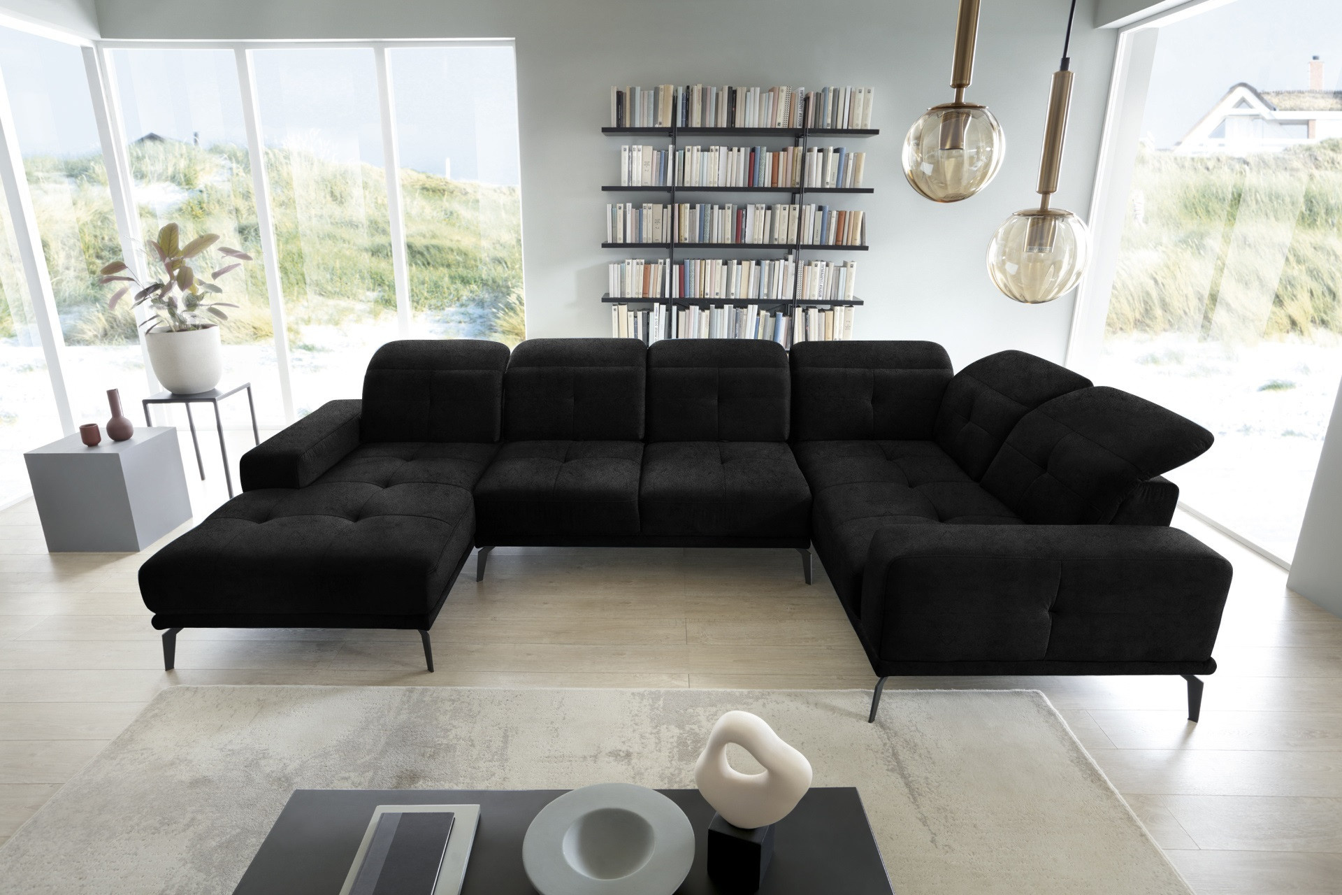 Rohová pohovka Neviro je moderný kus nábytku s dôvtipnými prvkami, ktoré výrazne uľahčujú relaxáciu. Zaujímavým riešením, ktorým je Neviro vybavený, je funkcia posuvných operadiel - ktorá vám umožňuje pohodlne si nastaviť polohu tela. Inteligentné, nastaviteľné opierky hlavy a pohodlná opierka ruky zvyšujú komfort. Sedák nábytku je vyrobený z vysoko pružnej HR peny a vlnitej pružiny, čo ešte viac zvyšuje pocit pohodlia. Okrem toho Neviro ponúka estetický zážitok vďaka štýlovému prešívaniu a elegantnému šitiu. Ďalším charakteristickým rysom rohovej pohovky sú vysoké čierne oceľové nohy. Neviro je kus nábytku s rozmermi: 350 x 201 x 77 cm.