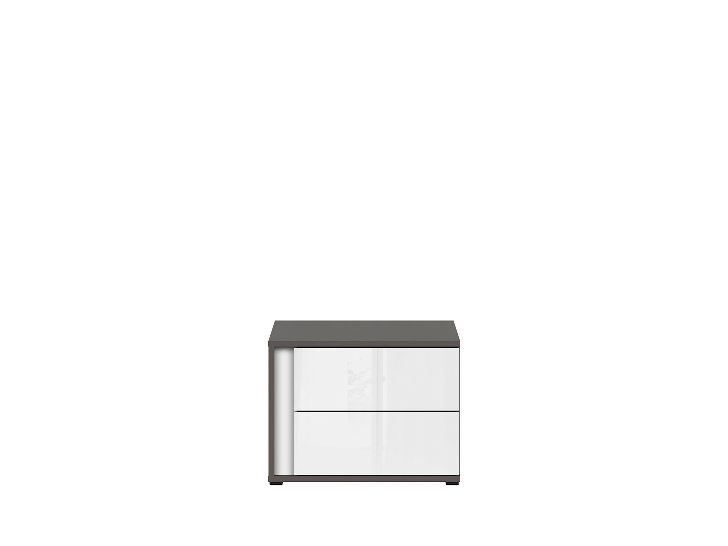 Nočný stolík je nevyhnutným doplnkom pohodlnej postele.Nočný stolík Graphic II (KOM2SP/C) je vďaka svojim kompaktným rozmerom vhodný do menších interiérov. Farebná úprava je sivý wolfrám/biely vysoký lesk. Vrchná časť stolíka je ideálnym miestom na lampu, pohár vody alebo obľúbenú knihu.
