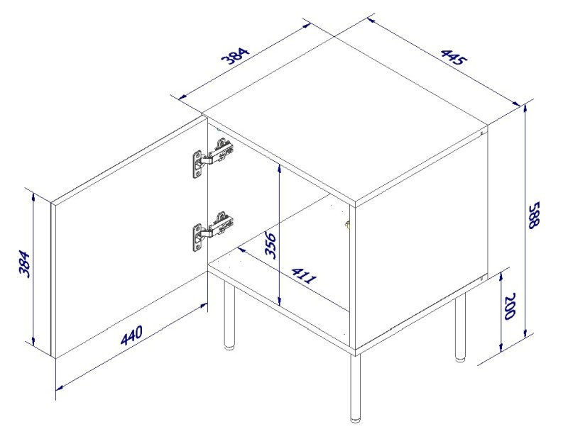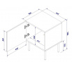 nočný stolík ( 2 ks. = 1 ks. ) rozmery: š/š/g-cm/cm/cm, materiál: rám: 16 mm matná laminovaná doska predná časť: 16 mm MDF doska nohy: kovové, čierne, výška 20 cm úchyty: systém PUSH - CLICK