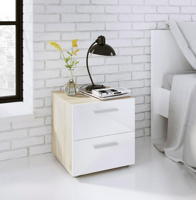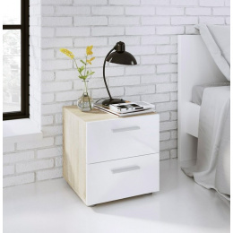 Nočný stolík PEDRO 070, Dub/Biely lesk