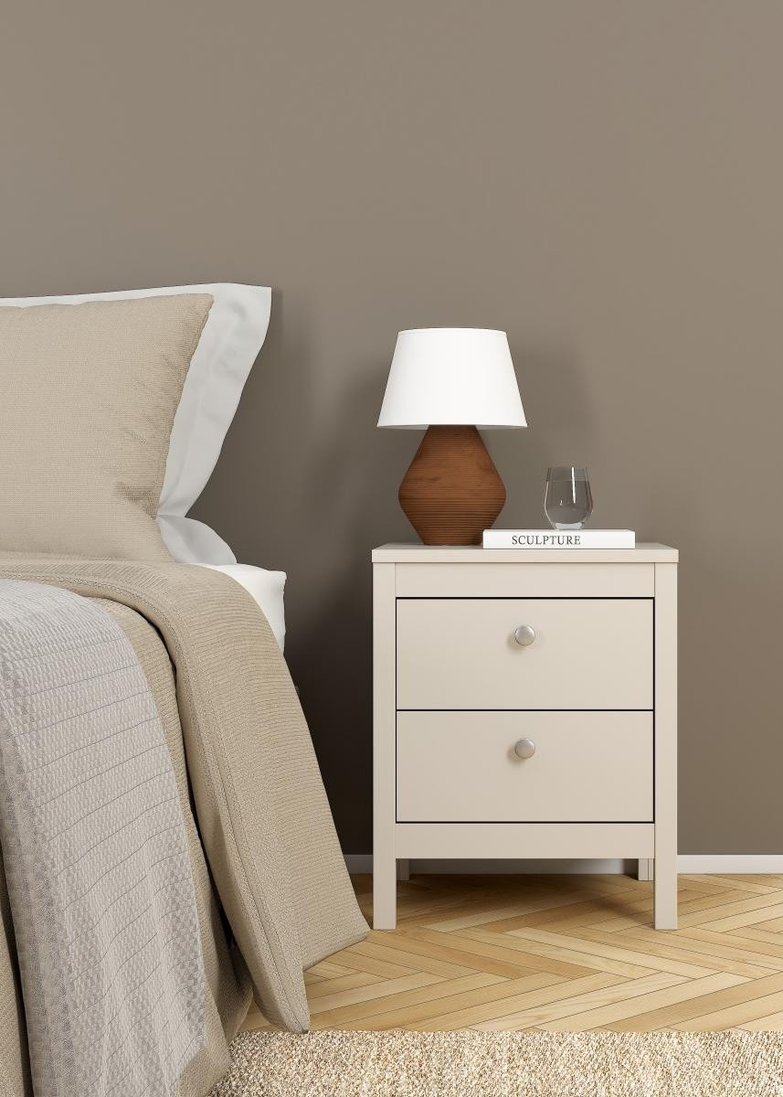 Nočný stolík Real skvele zapadne do moderného aj štýlového interiéru. Stačí zmeniť drobný detail, ktorým sú v tomto prípade úchytky a z jemného štýlu provence, razom budete mať moderný kus, ktorý skvele zapadne napr. do industriálneho štýlu. Stolík je vyrobený z lamina, ktoré je odolné a ľahké na údržbu. Priestranné zásuvky vám poskytnú úložný priestor pre všetko, čo potrebujete mať na dosah ruky.