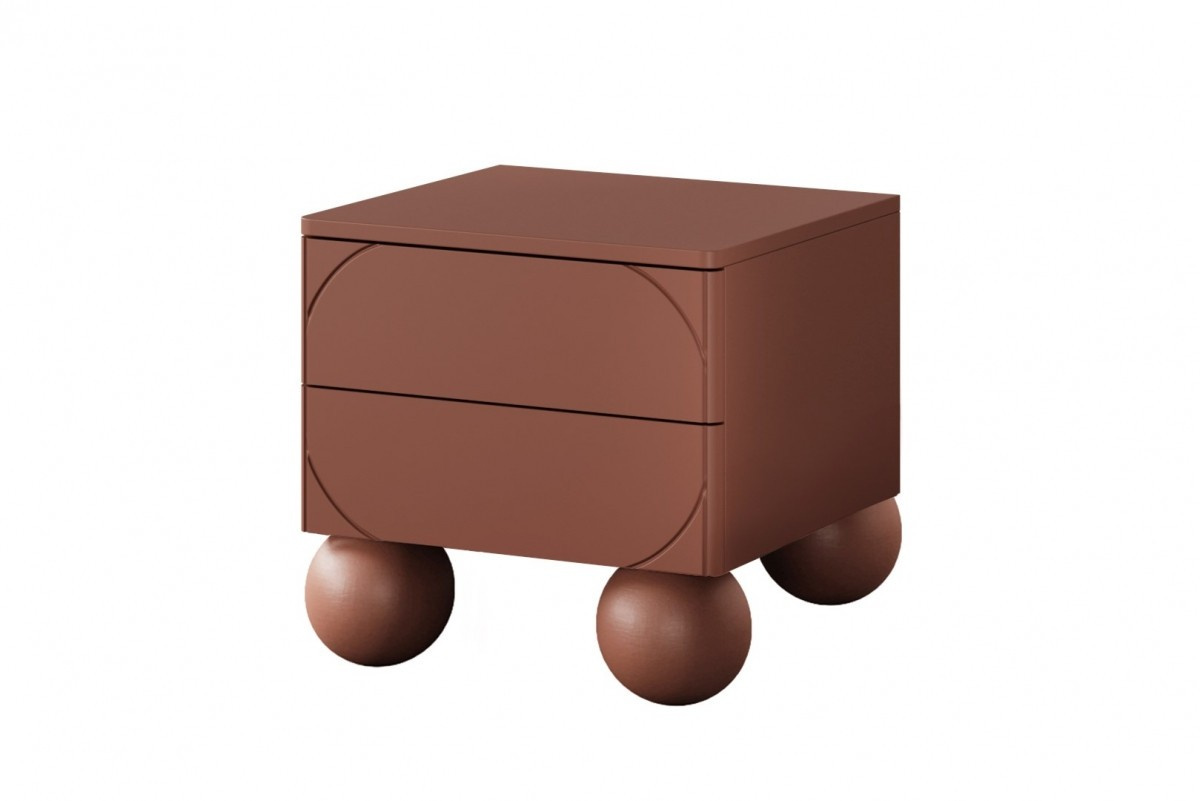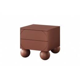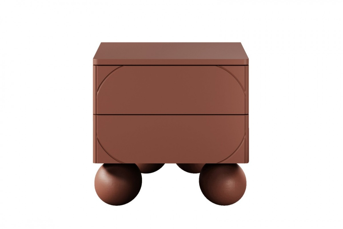 Nočný stolík Sonatia II s dvoma zásuvkami na guľôčkových nožičkách 45 cm - bordová, šírka: 45, výška: 47, hĺbka: 45, výška nôh: 12, montáž: