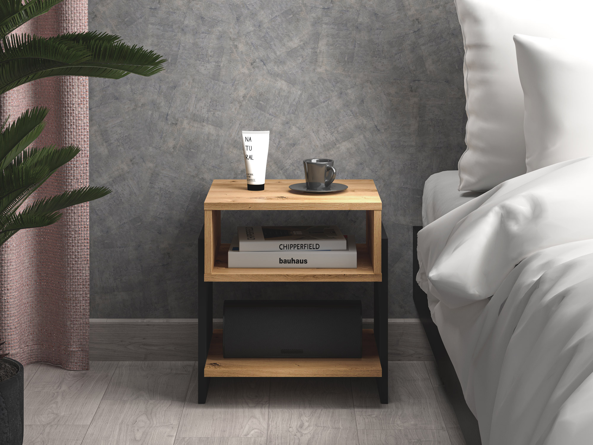 Nočný stolík TRIS 01, Dub Artisan/Čierna