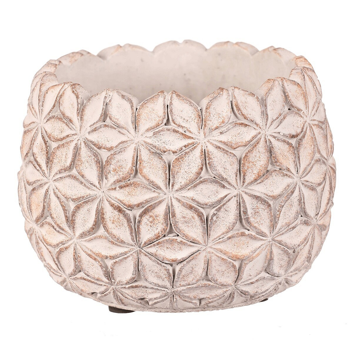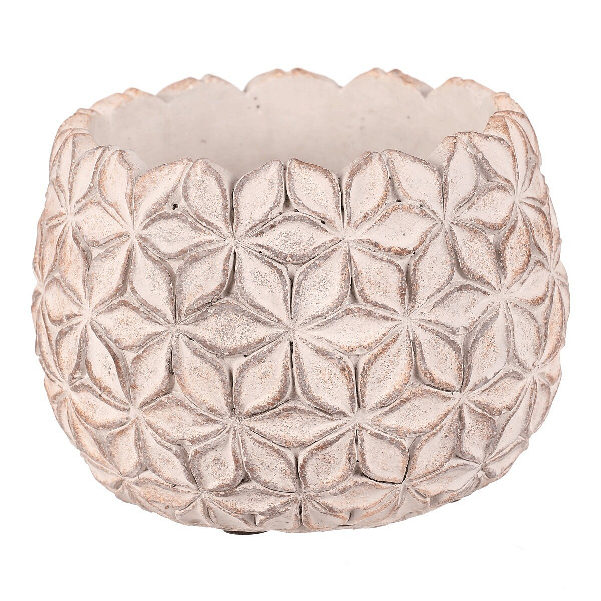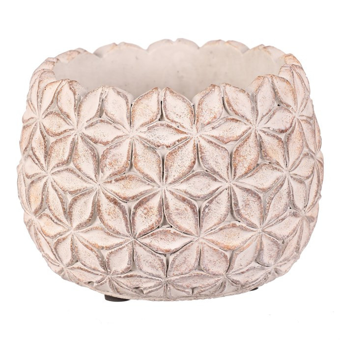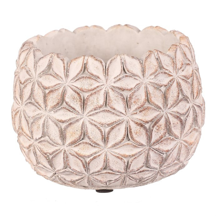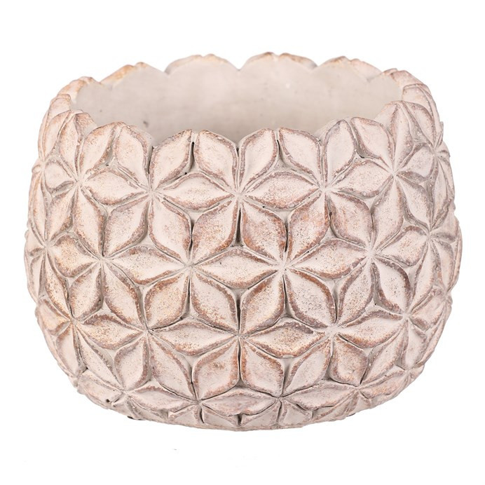 Betonový obal na květiny v elegantní světle šedé barvě s jemným květinovým vzorem po celém obvodu je skvělým základem pro vaše rostliny. S robustní a stabilní konstrukcí nejen krásně podtrhne vzhled vašich květin, ale také přidá do interiéru či exteriéru nádech moderního minimalismu. Vhodný pro rostliny, které si zaslouží pevný a stabilní základ.