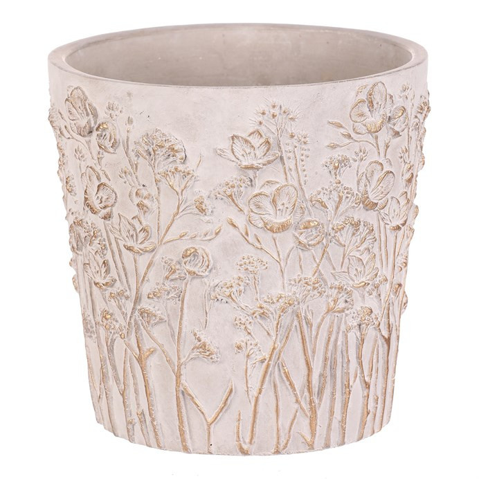 Tento betonový obal na květiny v elegantní šedé barvě je zdoben vzorem rozkvetlé louky, který přináší do vaší zahrady nebo terasy kouzlo přírody. Odolný materiál zajistí, že nejenže skvěle vypadá, ale také vydrží i v náročných venkovních podmínkách. Oživte svůj prostor tímto stylovým obalem, který bude fantastickou základnou pro vaše oblíbené květiny.