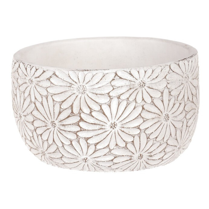 Přemýšlíte o výsadbě rostlin do nového obalu, který by vás nadchl svým vzhledem a byl přitom dostatečně pevný a odolný? Perfektním řešením pro vás bude právě tento bílý betonový obal s květinovým dekorem. Vzhledem ke své menší velikosti nabízí prostoru spíše pro drobnější druhy květin popřípadě sukulentů. Kombinace krásných rostlin zasazených do takto zdobené a tvarované dekorace spolu vytvoří jedinečnou kompozici. Při pohledu na tuto vámi vytvořenou krásu budete na sebe hrdí a mít skvělý pocit z dobře odvedené práce, což náležitě ocení i ostatní lidé ve vašem okolí.