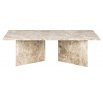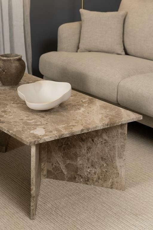 Tento konferenčný stolík vnesie do obývacej izby nadčasovú eleganciu. Obdĺžniková doska a základňa v tvare písmena V dodávajú miestnosti jedinečný charakter. Vyrobený z béžového mramoru so svetlými žilkami, kameň sa prirodzene líši farbou, štruktúrou a povrchom, vďaka čomu je každý kus jedinečný. Je to druh výrazného prvku, ktorý zostáva aktuálny bez ohľadu na trendy. Hlavné vlastnosti: Sochársky konferenčný stolík prinesie do obývacej izby sofistikovanosť. Štvorcová doska a základňa v tvare písmena V zabezpečujú moderný vzhľad. Vyrobený z béžového tureckého mramoru so svetlými žilkami. Kameň sa prirodzene líši farbou, štruktúrou a povrchom, vďaka čomu je každý exemplár jedinečný. Matná, lakovaná úprava zdôrazňuje krásu materiálu. Počet kartónov: 2 Rozmery kartónov: 14x150x93cm 62x72x61cm Hmotnosť kartónov: 65kg 62kg