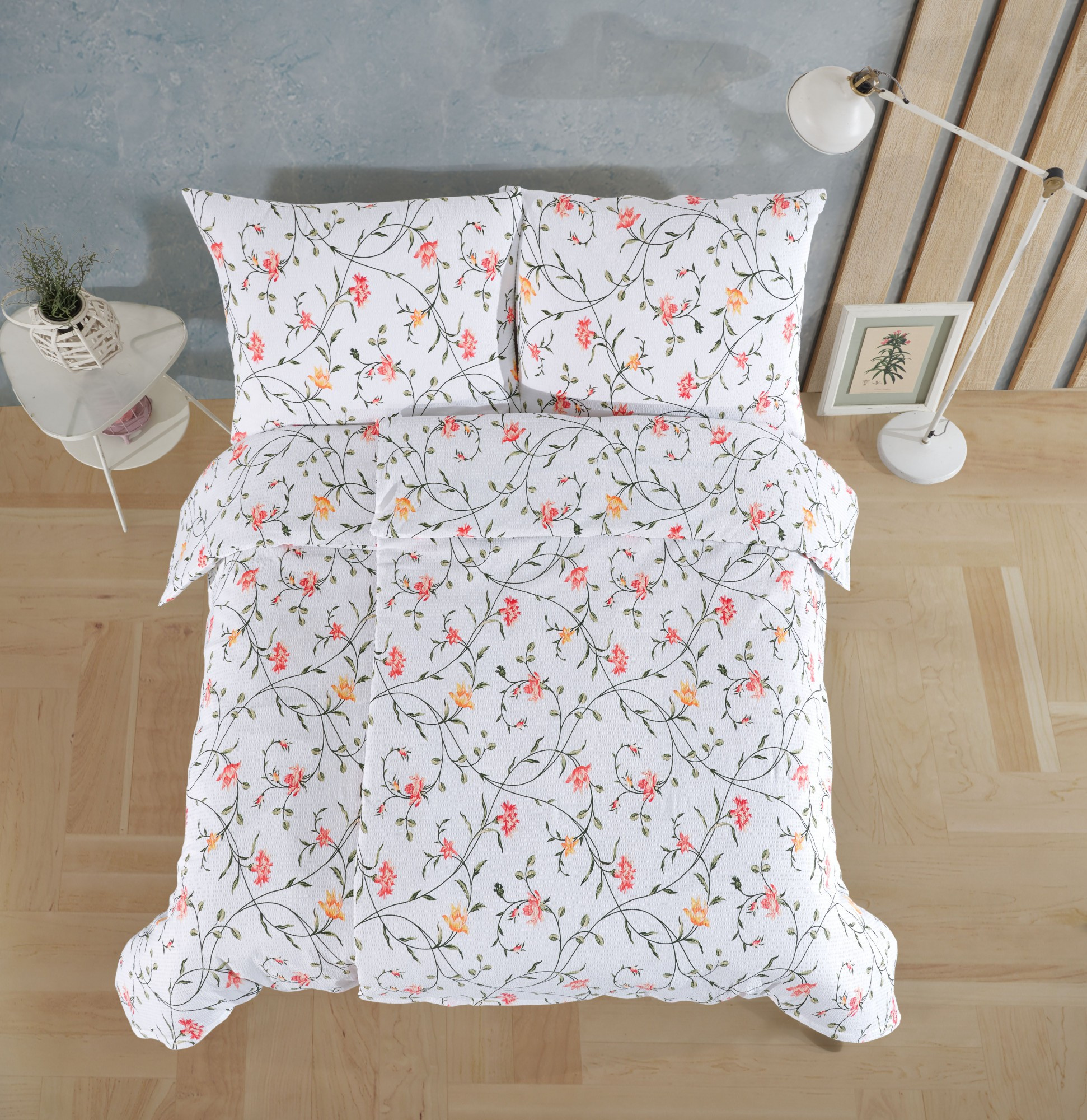 Obliečky sú vyrobené z veľmi jemnej 100% bavlnenej tkaniny s plošnou hmotnosťou tkaniny 130g/m2. Krepovanie je vytvorené pomocou špeciálnej úpravy. Vďaka tomuto krepovaniu sa posteľná bielizeň nemusí žehliť. Tkanina má vysokú hustotu veľmi jemných priadzí a pre tieto svoje vlastnosti je veľmi jemná a príjemná na dotyk. Posteľná bielizeň je vyrobená s rozmerovou rezervou pre zrazenie po vypraní. Obliečky sú vyrobené v SR s obľúbeným zipsovým uzáverom.