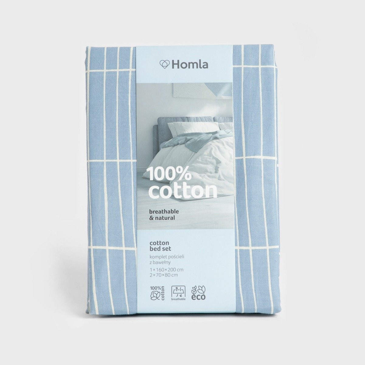Obliečky GRILA bavlnené modré kockované 140x200 + 1*70x80 cm 729386