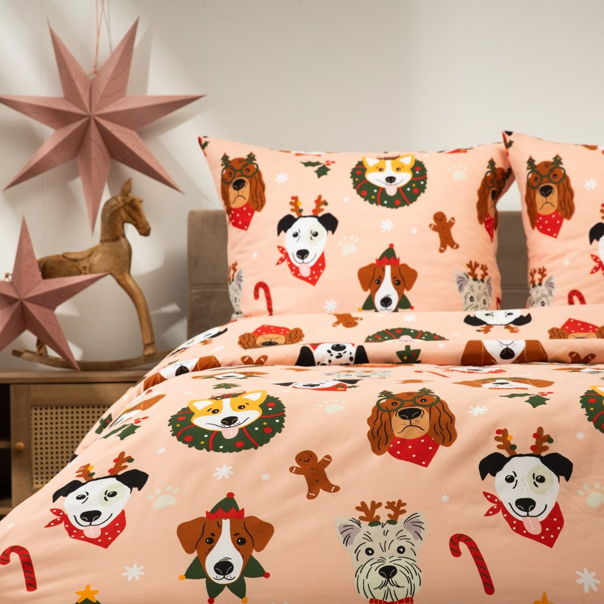 Ozdobte svoju spálňu pre sviatočné obdobie, vyberte si elegantné obliečky MIRTH s roztomilým vzorom psíkov, ktoré sa dokonale hodia do vašej vianočnej výzdoby. S ním môžete ľahko vniesť do svojich interiérov čarovnú atmosféru pokoja a relaxácie. Táto sada obliečok na vankúše zaujme ako dizajnom, tak aj odolnosťou. Bol vyrobený s dôrazom na detail z vysoko kvalitného mikrovlákna, ktoré vykazuje vysokú odolnosť proti oderu, a čo viac, ani po opakovanom praní nestráca farby. Vytvorte vo svojom domove špeciálnu sviatočnú atmosféru.