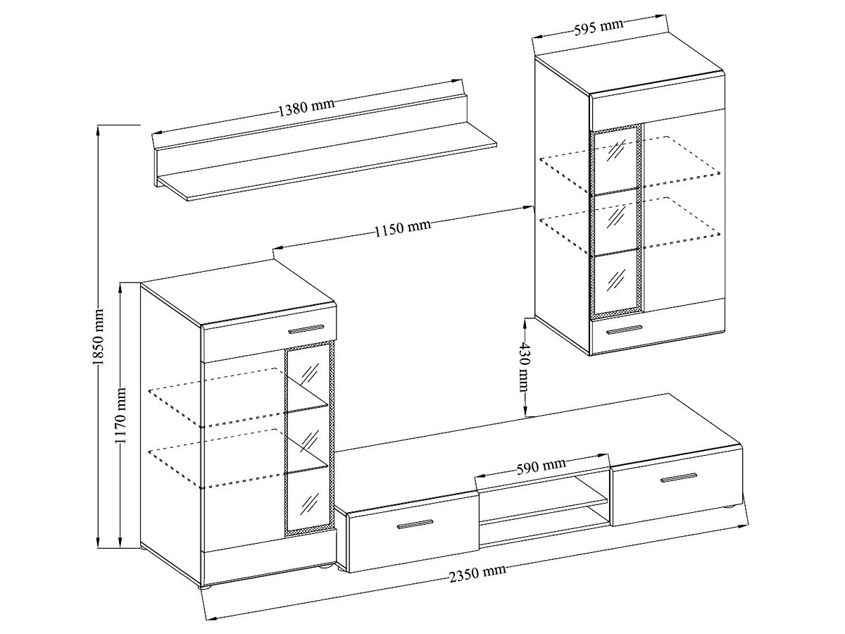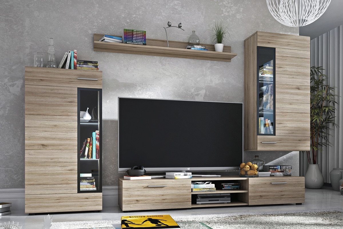 Obývacia stena Ivan San Remo tmavá, šírka: 235, výška: 185, hĺbka: 40,2, montáž: vlastná. Moderná ponuka obývacej zostavy Tango vo verzii San Remo.