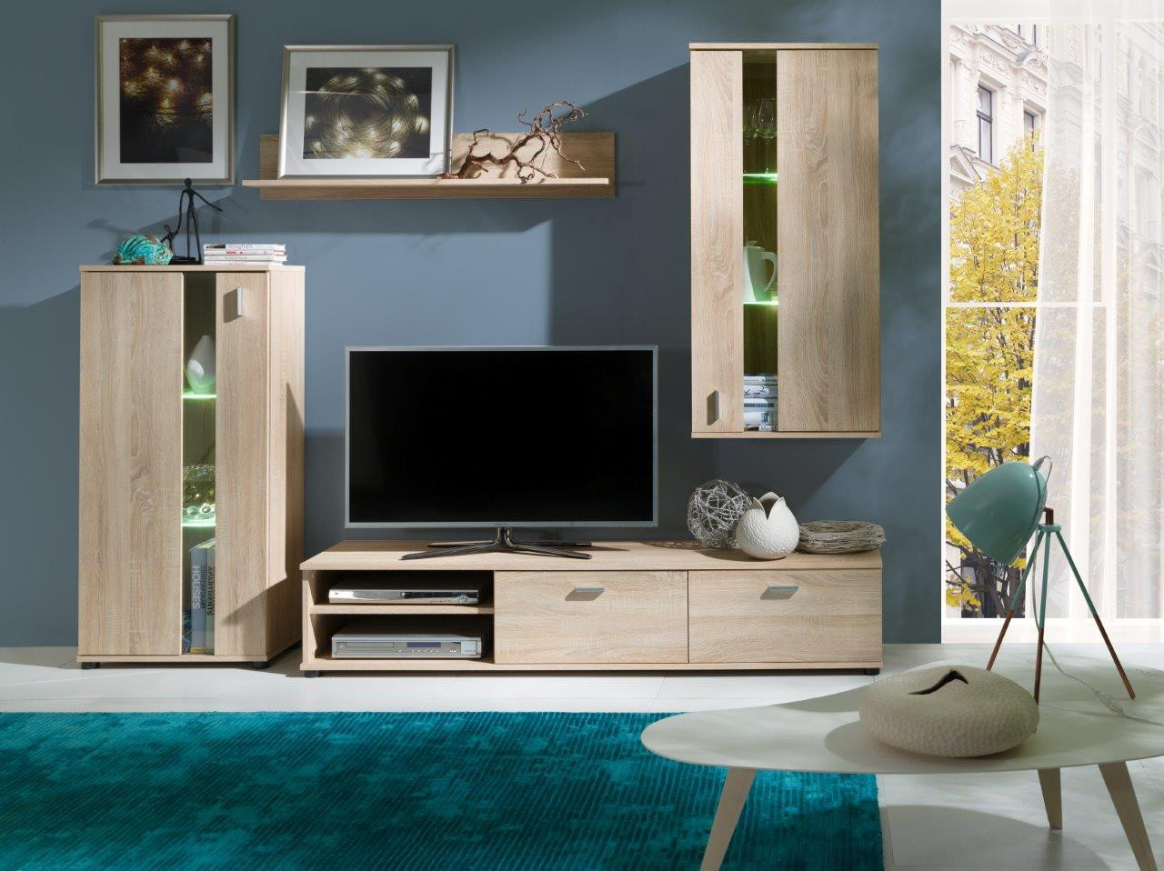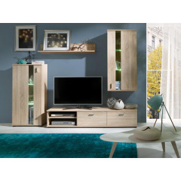 Obývacia stena Mira vyniká moderným a elegantným vzhľadom. Je vyrobený z vysokokvalitných materiálov. Sektor sa skladá zo 4 prvkov, ako je závesná vitrína, polica, TV stolík, vitrína. Plochá stena sa dodáva bez osvetlenia LED. Osvetlenie je možné objednať.