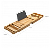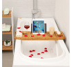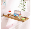 Bambusový podnos do vany je praktickým doplňkem pro relaxaci ve vaně, který nabízí několik odkládacích prostorů pro knihy, nápoje či kosmetiku. Vyroben je z přírodního bambusu, který je navržen pro dlouhou životnost a snadnou údržbu. Podnos disponuje nastavitelnou opěrkou pro knihu nebo tablet, která zajišťuje pohodlné čtení během koupání. Jeho rozměry 75 × 23 × 4,5 cm umožňují stabilní umístění přes vanu a díky pevnému provedení se snadno přizpůsobí různým šířkám van. Přírodní odstín bambusu přináší do koupelny příjemný vizuální efekt a zároveň odolnost vůči vlhkosti.
