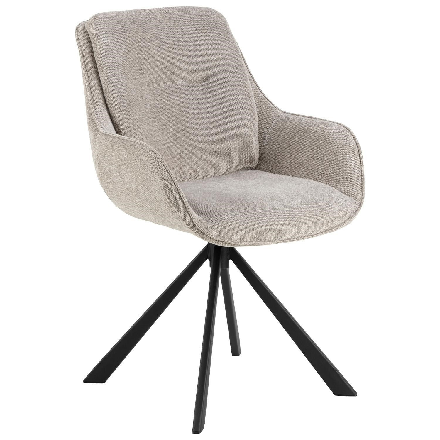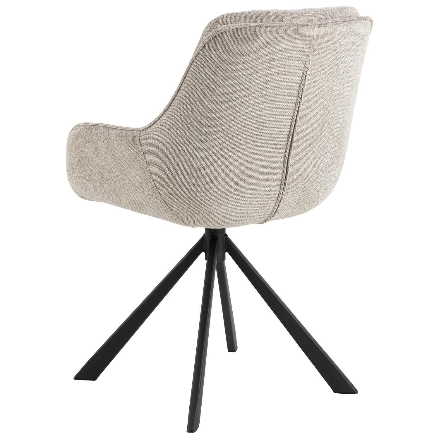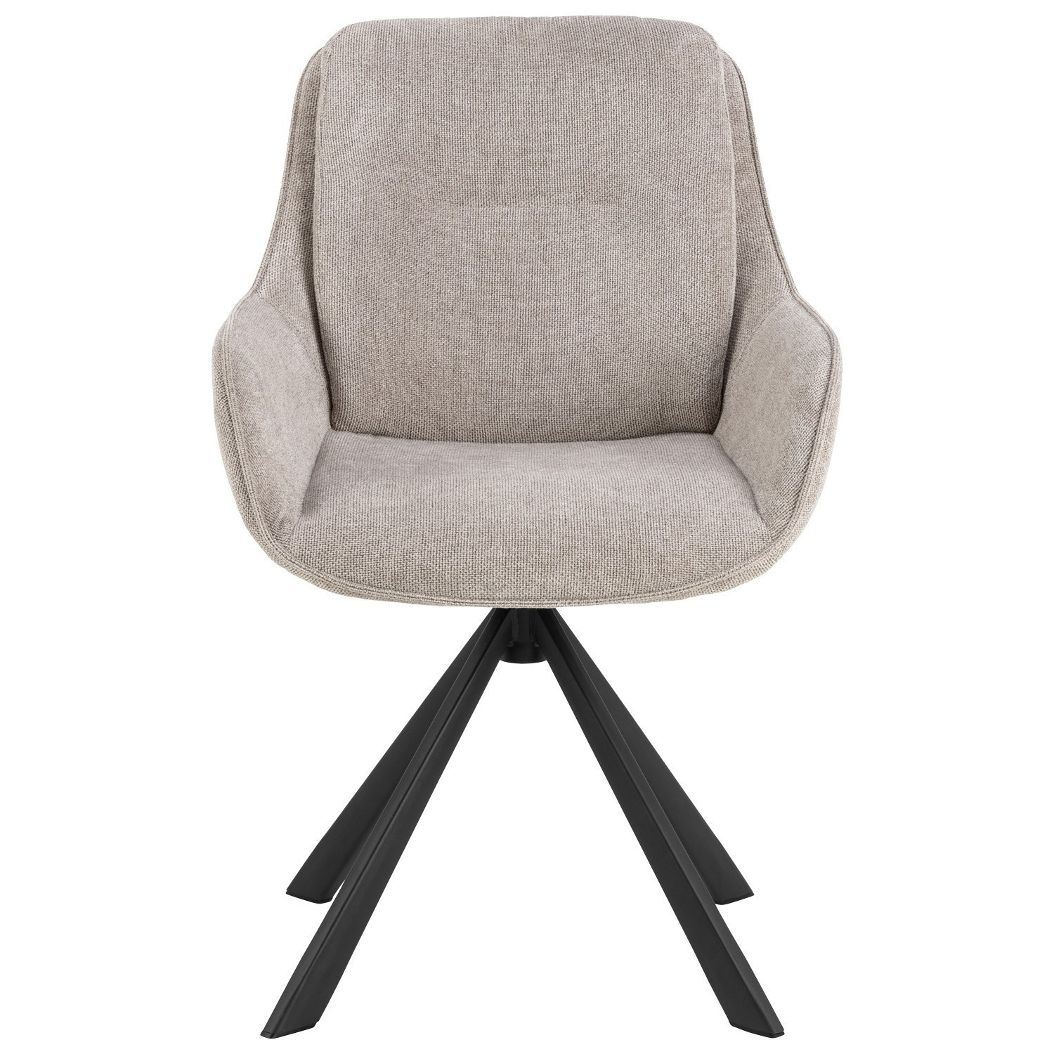 Stolička do jedálne s opierkami Carrie s elegantnými líniami prináša do jedálne jemný, útulný dizajn. Sedák má ďalšiu vrstvu vo vzhľade vankúša, prišitú k operadlu, aby zabezpečil príjemné pocity a pohodlnú oporu. Vďaka šenilovému čalúneniu v béžovej farbe stolička poskytuje upokojujúci pocit. Pohyb je tiež jednoduchý, pretože sedadlo spočíva na čiernej 4-hviezdičkovej základni s funkciou otáčania. Stolička do jedálne Carrie v látke Caso sand 4 FR, 4-hviezdičková základňa z matnej, čiernej, hrubej ocele lakovanej práškovou farbou s horizontálnym prešívaním, otočná a so zipsom, vyrobená z nehorľavých materiálov. Certifikát FSC. Výška operadla 43 cm Šírka sedadla 44 cm Hĺbka sedadla 43 cm Výška podrúčky od podlahy 63 cm Šírka podrúčky 3 cm Hĺbka podrúčky 28 cm Výška podrúčky 16 cm Max. zaťaženie 110 kg