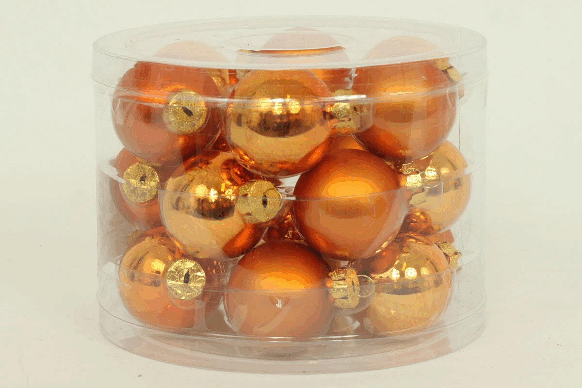 Skleněné kulaté vánoční ozdoby na pověšení ve zlatých barvách o průměru 4 cm, rozzáří váš stromek i interiér. Balené jsou v PVC boxu po 18 kusech a dodají vaší výzdobě sofistikovaný lesk a kouzlo. Perfektní pro vytvoření sváteční atmosféry, ať už zdobíte stromeček nebo jiná místa ve vašem domě.