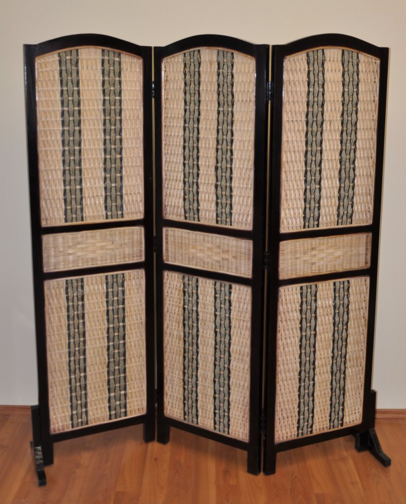 Paraván Aster je vyrobený z mahagónového dreva s prírodným ratanovým výpletom. | Výška obrazovky je 180 cm. Obrazovka sa skladá z troch častí so šírkou 50 cm.