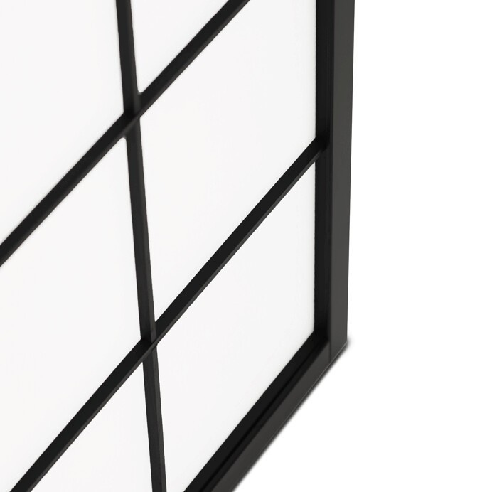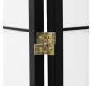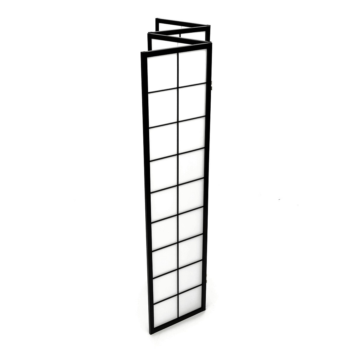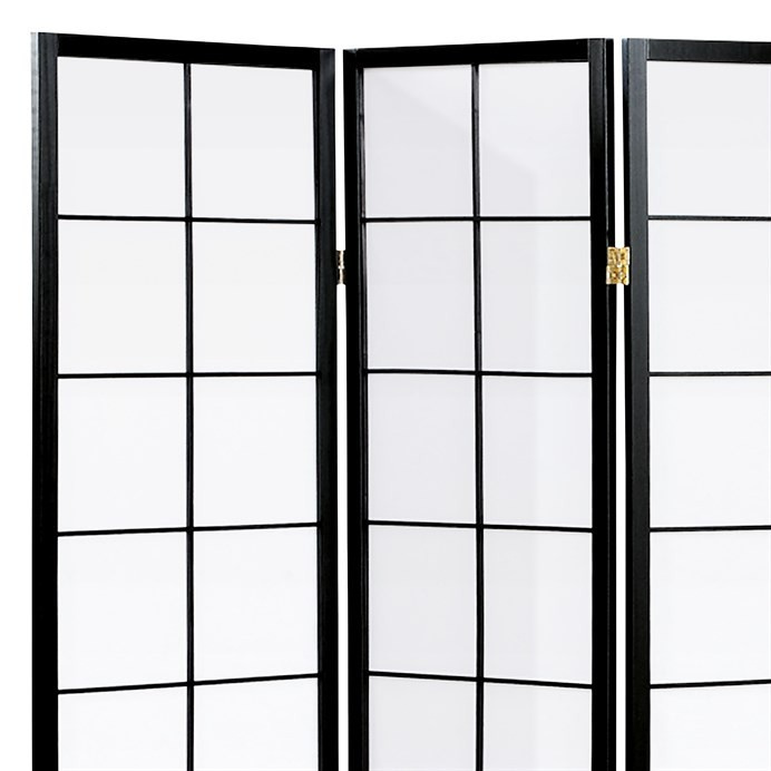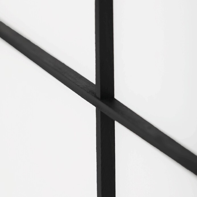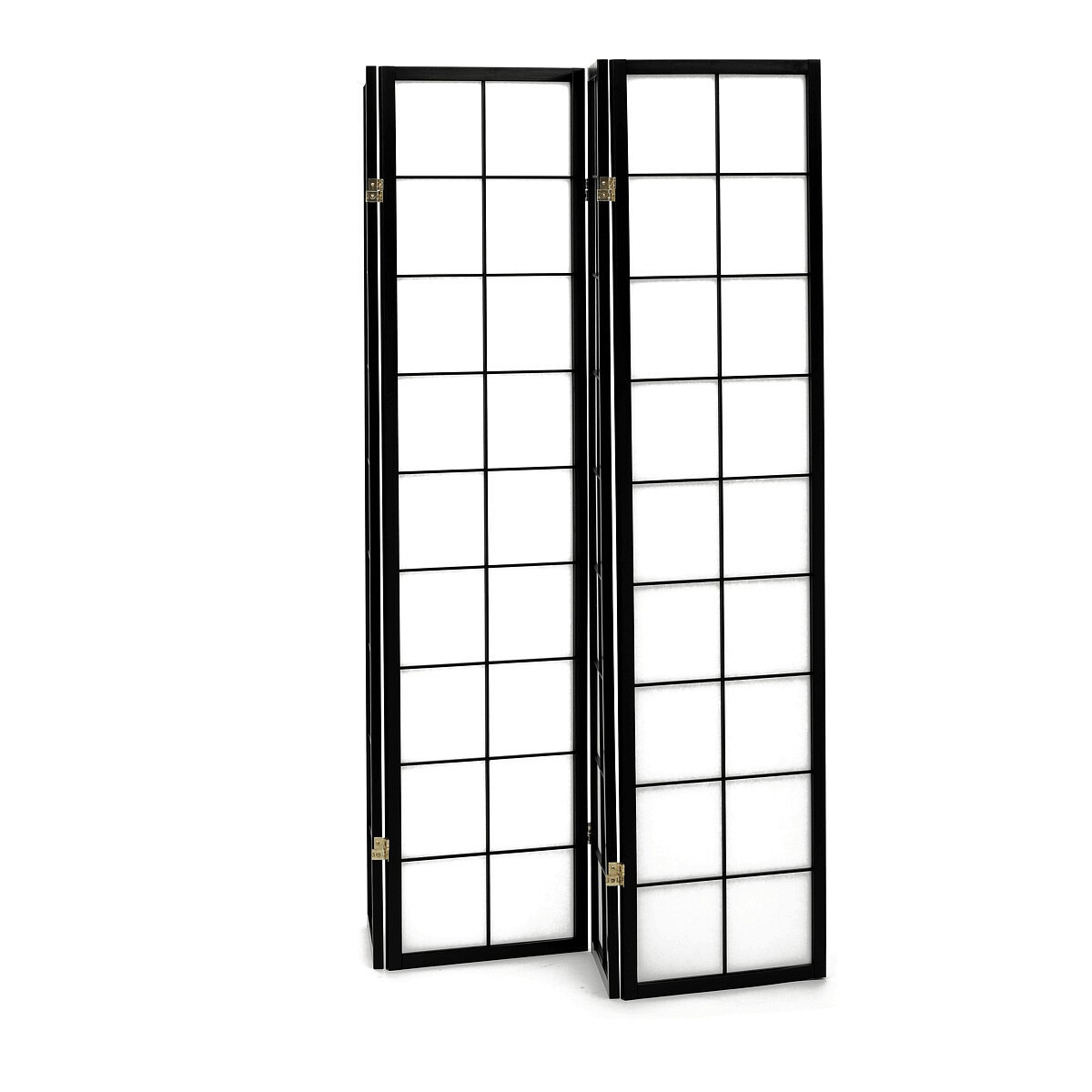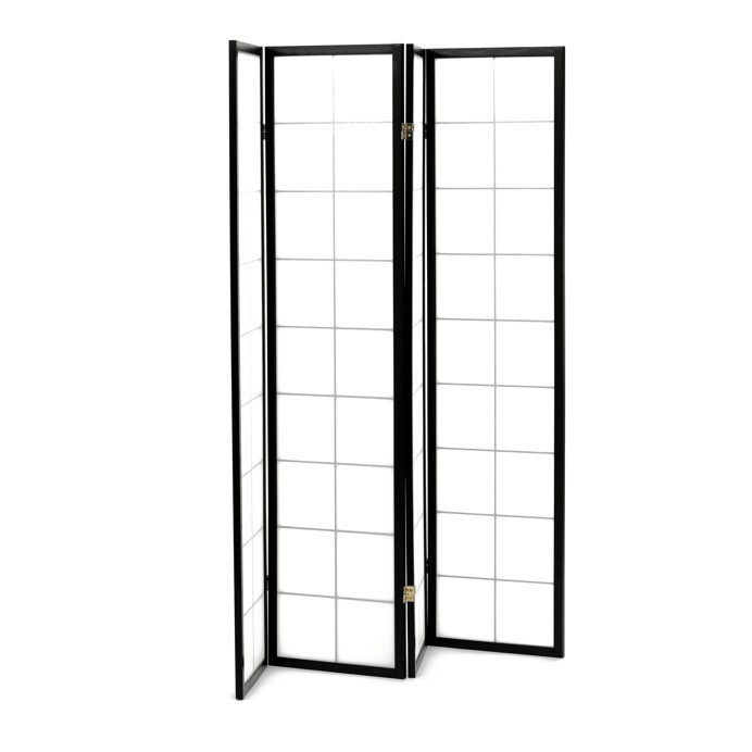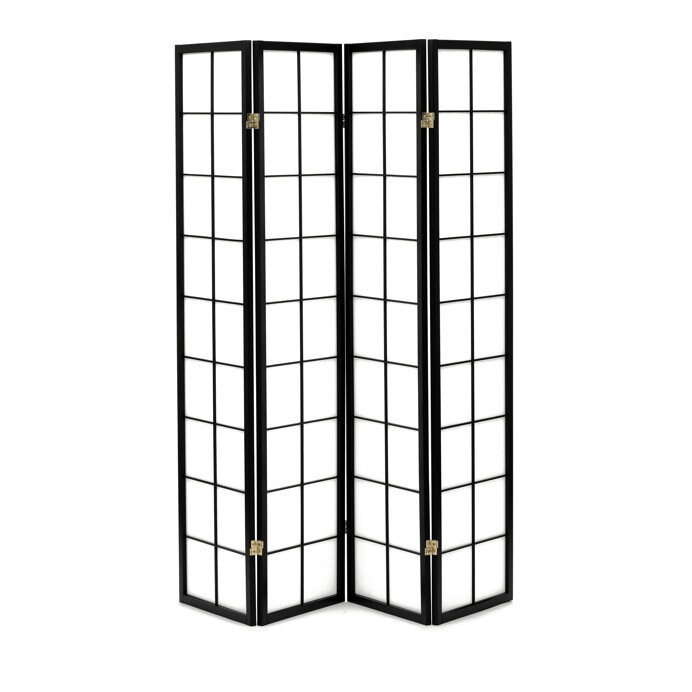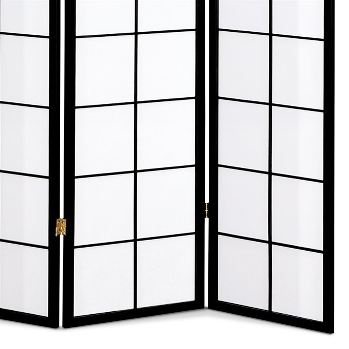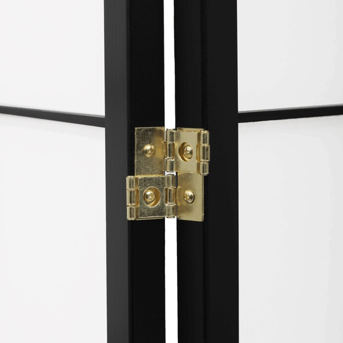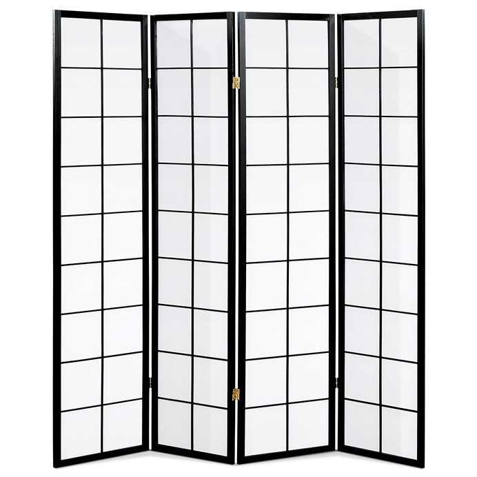4-dielna voľne stojaca paravánová stena s konštrukciou z masívneho smrekového dreva v čiernom odtieni, lakovaná transparentným lakom a výplňou z bielej netkanej textílie. Plní nielen funkciu okrasnú, ale aj praktickú. Možno ho použiť ako zástenu alebo diskrétnu aj optickú deliacu priečku nielen v byte, ale aj v komerčných priestoroch. Vďaka skladacej konštrukcii a celkovej nízkej hmotnosti ho možno bez problémov premiestňovať a manipulovať s ním. Kombinácia dreva a netkanej textílie pôsobí vzdušným dojmom, štýlovo možno paraván umiestniť do akéhokoľvek zariadeného interiéru. V každom si nájde zaslúžené miesto. Výška paravánu je 180 cm, šírka jedného dielu 44 cm, celková plná šírka je 174 cm. Hrúbka steny je 2 cm. Steny paravánu sú k sebe pripevnené kovovými pomosadznými pántmi. Celková hmotnosť je 6,5 kg.