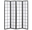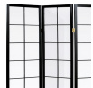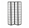 Paraván drevený 4 dielny, masív smrek, biela netkaná textília, čierny matný lak
