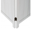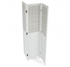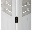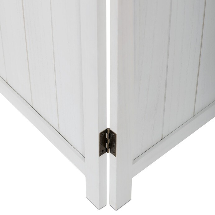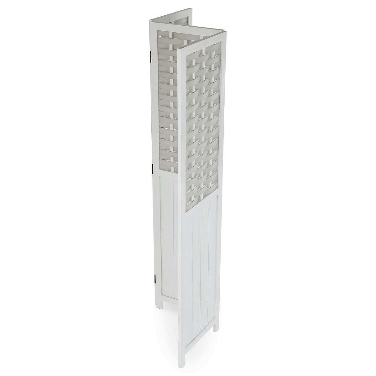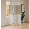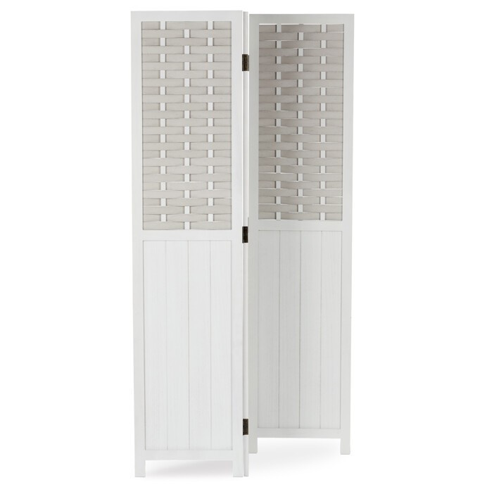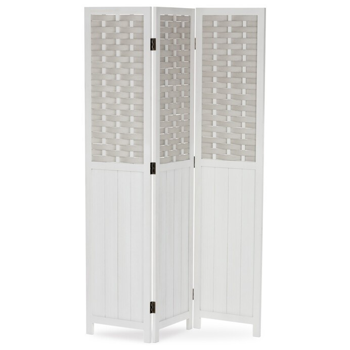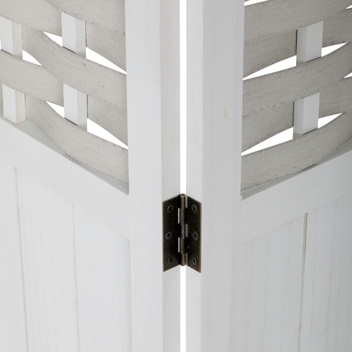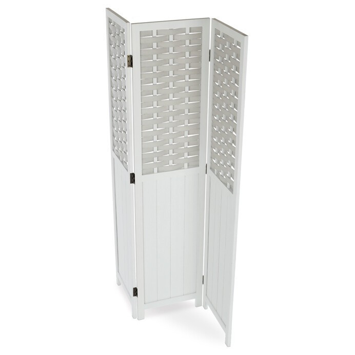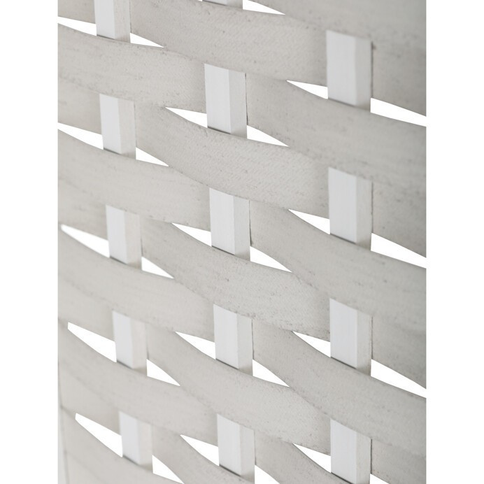 Třídílný paraván z masivního smrkového dřeva v bílé barvě nabízí praktické řešení pro rozdělení prostoru či vytvoření soukromí v interiéru. Každý díl je tvořen pevnou rámovou konstrukcí s dolní částí z masivních PVC lamel a horní částí s proplétaným vzorem, který dodává lehkost a zajímavý vizuální efekt. Díky pevním kovovým pantům lze jednotlivé díly snadno skládat a nastavit do požadovaného úhlu, což zajišťuje stabilitu a variabilitu použití. Povrchová úprava bílým nátěrem podtrhuje přírodní charakter dřeva a umožňuje snadnou údržbu. Paraván je vhodný pro použití v domácnostech i komerčních prostorách, kde oceníte kombinaci funkčnosti a decentního designu. Rozměr jednoho dílu je 40x171 cm.