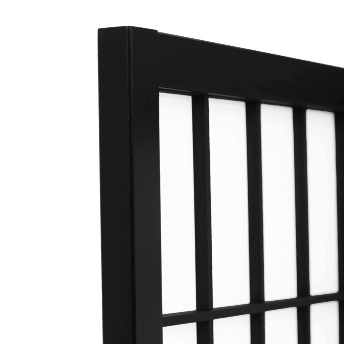 Třídílný paraván je vyroben z masivního smrkového dřeva s povrchovou úpravou v černém matném laku, který zajišťuje kvalitní zpracování a dlouhou životnost. Výplň tvoří bílá netkaná textilie, jež propouští světlo a zároveň poskytuje dostatečné soukromí. Díky třem otočným dílům umožňuje flexibilní nastavení úhlu a snadné přizpůsobení prostoru. Paraván je vhodný pro oddělení místností, vytvoření soukromých zón nebo jako dekorativní prvek interiéru. Jeho rozměry a pevná konstrukce zaručují stabilitu při použití v různých typech prostor.