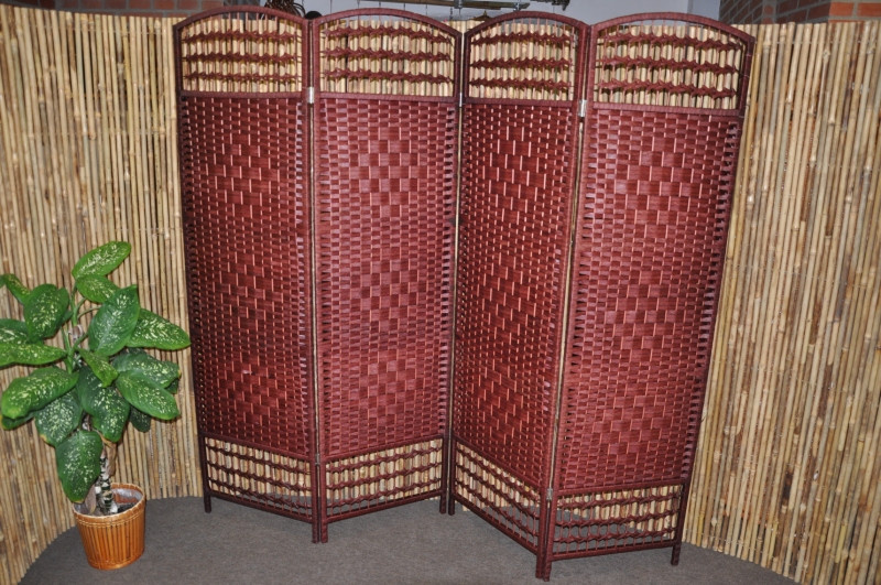 Paraván šnúrkový štvordielny farba mahagón