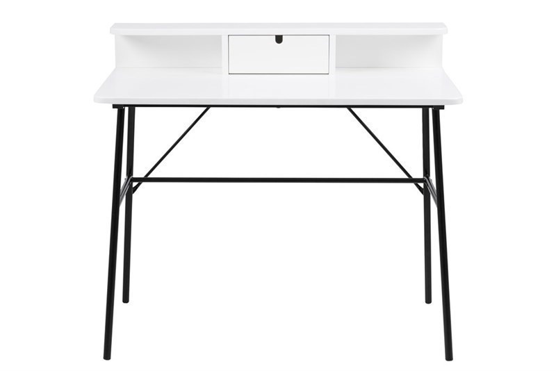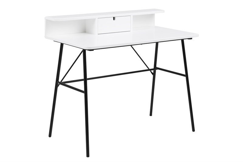 Písací stôl Pascal je minimalistický stôl vyrobený z kovu a dreva moreného na bielu farbu.