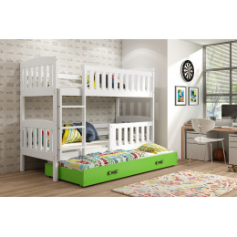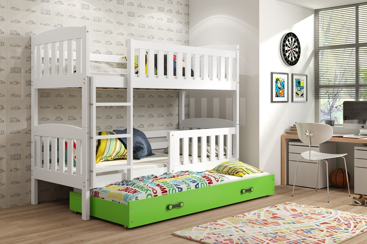 Poschodová posteľ s prístelkou Kuba biela/zelená