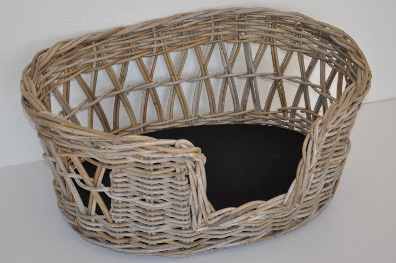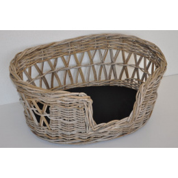 Pelech pre psa z prírodného ratanu kubu v prírodnej sivej farbe. | Rozmery postele sú 73x55x35 cm Posteľ sa dodáva s vnútorným vankúšom v čiernej farbe.