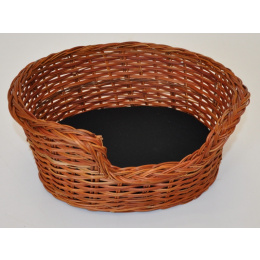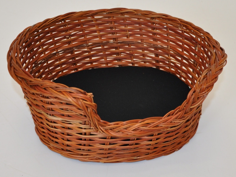 Prútená posteľ z prírodného papradia bez lakovanej povrchovej úpravy. | Rozmery postele sú 33x27x16 cm Čierny vankúš je vyplnený polyesterovým antialergickým vláknom. >>