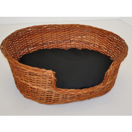 Prútená posteľ z prírodného papradia bez lakovanej povrchovej úpravy. | Veľkosť postele je 63x51x22 cm. Vankúš v čiernej farbe je vyplnený polyesterovým vláknom proti riasam.>