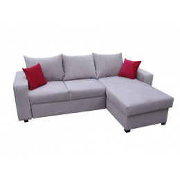 Rohová pohovka PEPE, ľavá, svetlosivá/červené vankúše