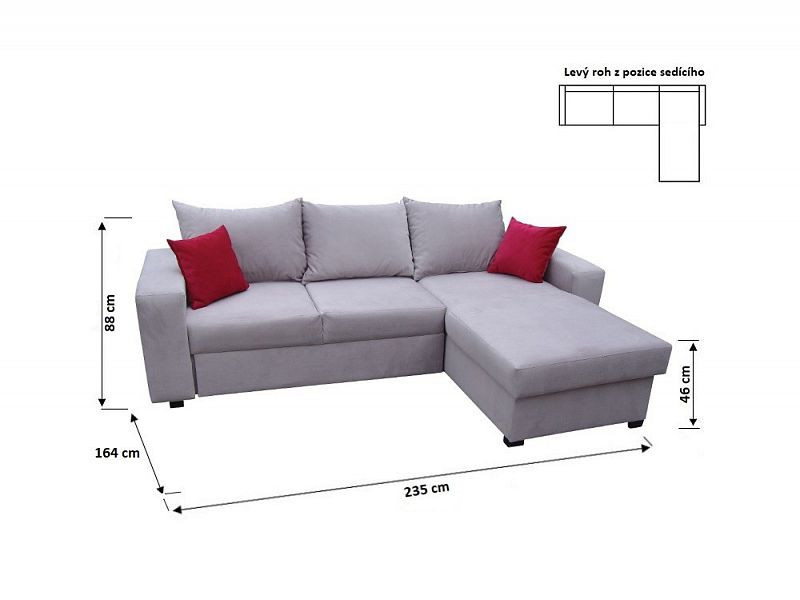Pohovka je rozkladacia a má úložný priestor. Po rozložení má plocha na spanie rozmery138 x 193 cm.