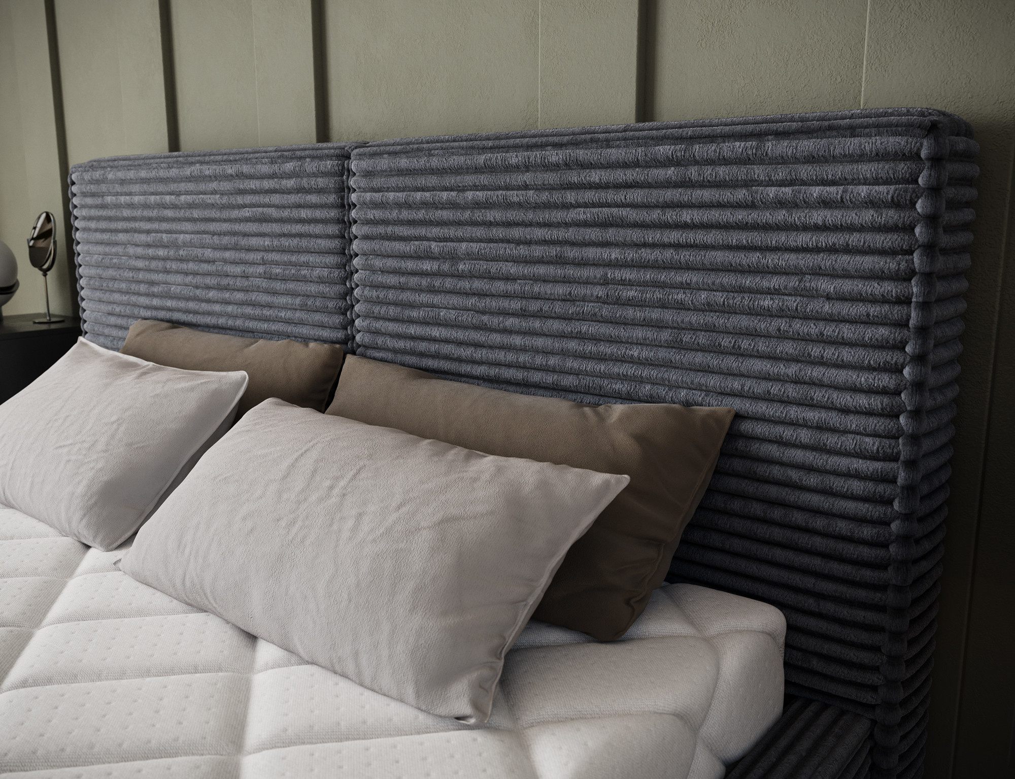 Posteľ do spálne Pesillo kombinuje eleganciu a funkčnosť v modernom dizajne. Model je k dispozícii v troch veľkostných variantoch: 140x200 cm, 160x200 cm a 180x200 cm, čo vám umožní dokonale prispôsobiť posteľ rozmerom vašej spálne a vašim individuálnym potrebám. Celková výška postele je 103 cm, zatiaľ čo jej hĺbka meria 220 cm. Šírka závisí od vybraného modelu a je 158 cm, 178 cm alebo 198 cm. Pěnová výplň T2130 zaisťuje pohodlie a odolnosť, zatiaľ čo robustné čierne plastové nohy nábytku poskytujú stabilitu a elegantný vzhľad. Posteľ Pesillo je vybavená praktickým úložným priestorom na posteľnú bielizeň, čo umožňuje efektívne využitie priestoru a jednoduchú organizáciu. Navrhnutý v modernom štýle, dokonale zapadá do súčasných trendov interiérového dizajnu, vytvára útulnú a elegantnú atmosféru ideálnu na relaxáciu.