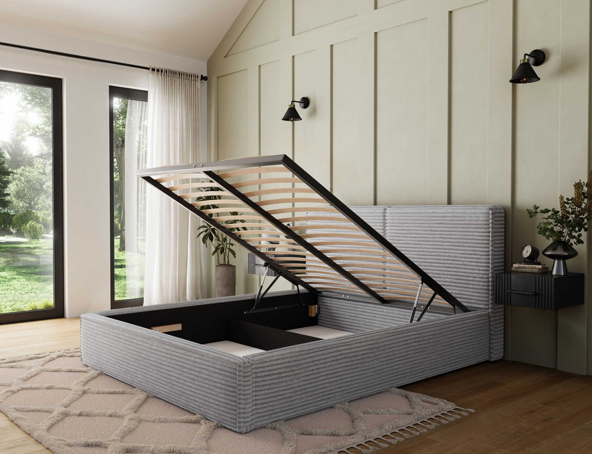 Posteľ do spálne Pesillo kombinuje eleganciu a funkčnosť v modernom dizajne. Model je k dispozícii v troch veľkostných variantoch: 140x200 cm, 160x200 cm a 180x200 cm, čo vám umožní dokonale prispôsobiť posteľ rozmerom vašej spálne a vašim individuálnym potrebám. Celková výška postele je 103 cm, zatiaľ čo jej hĺbka meria 220 cm. Šírka závisí od vybraného modelu a je 158 cm, 178 cm alebo 198 cm. Pěnová výplň T2130 zaisťuje pohodlie a odolnosť, zatiaľ čo robustné čierne plastové nohy nábytku poskytujú stabilitu a elegantný vzhľad. Posteľ Pesillo je vybavená praktickým úložným priestorom na posteľnú bielizeň, čo umožňuje efektívne využitie priestoru a jednoduchú organizáciu. Navrhnutý v modernom štýle, dokonale zapadá do súčasných trendov interiérového dizajnu, vytvára útulnú a elegantnú atmosféru ideálnu na relaxáciu.