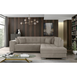 Pieretta je multifunkčná, napriek tomu elegantná a priestranná rohová pohovka vyrobená v klasickom štýle. Jedná sa o vysoko kvalitný kus nábytku so širokým sedákom, ktorého výplň je vytvorená z kombinácie vlnitej pružiny a peny T30.Za Pierettou s rozmermi 260 x 205 x 80 cm sa neskrýva len pohodlie, ale aj dobre prespané noci vďaka mimoriadne veľkej spacie ploche. Typ rozkladania delfín vám umožňuje ľahko a bez námahy rozložiť pohovku, čím ju obohatíte o funkciu priestrannej postele s rozmermi 200 x 126 cm.Maximálny efekt vnímaného pohodlia je ovplyvnený okrem iného mäkkým sedákom, šikmou tvarovanou opierkou rúk, veľkými vankúšmi zahrnutými v sade, ako aj chrómovanými oválnymi nohami a tvarovaným operadlom s elegantným prešívaním. Ak vás zaujíma, čo ďalšie môže rohová sedačka Pieretta ponúknuť - neváhajte si vybrať kus nábytku od Eltap.