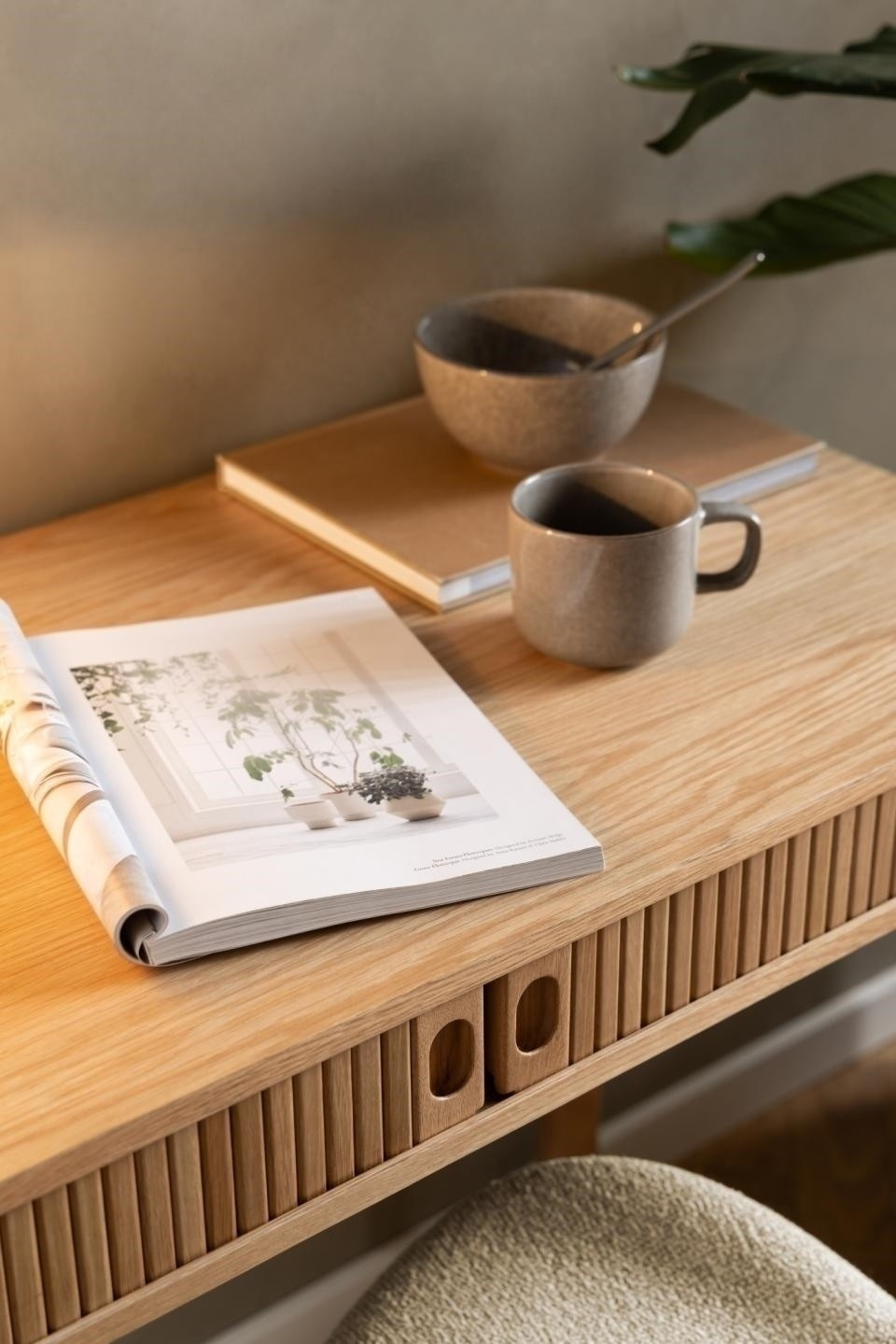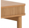 Vyrobené v obdĺžnikovej forme so zaoblenými rohmi, stôl kombinuje modernú a prírodnú estetiku, ktorá sa hodí k najnovším štýlom interiérov. Dekoratívne lišty, okrúhly tvar a lakované dubové akcenty definujú charakteristický vzhľad stola. Vo vnútri stola, za dvierkami s lamelami, je možné ukladať nevyhnutné predmety. Stôl s dekoratívnou lištou zdôrazňujúcou textúru. Obdĺžnikový korpus s dubovou dyhou a zaoblenými rohmi. Navrhnuté so žalúziovými dverami. Lakované prevedenie zaisťuje prirodzený dojem. Obdĺžnikový stôl Langley, doska MDF s povrchovou úpravou z dubovej dyhy lakovanej, 2 dvere MDF dubová dyha lakovaná NC, základňa dubová lakovaná NC, s lamelovým čelom, posuvnými dverami a žalúziovými dverami, 100x50x75 cm. Výška nôh: 64,7 cm