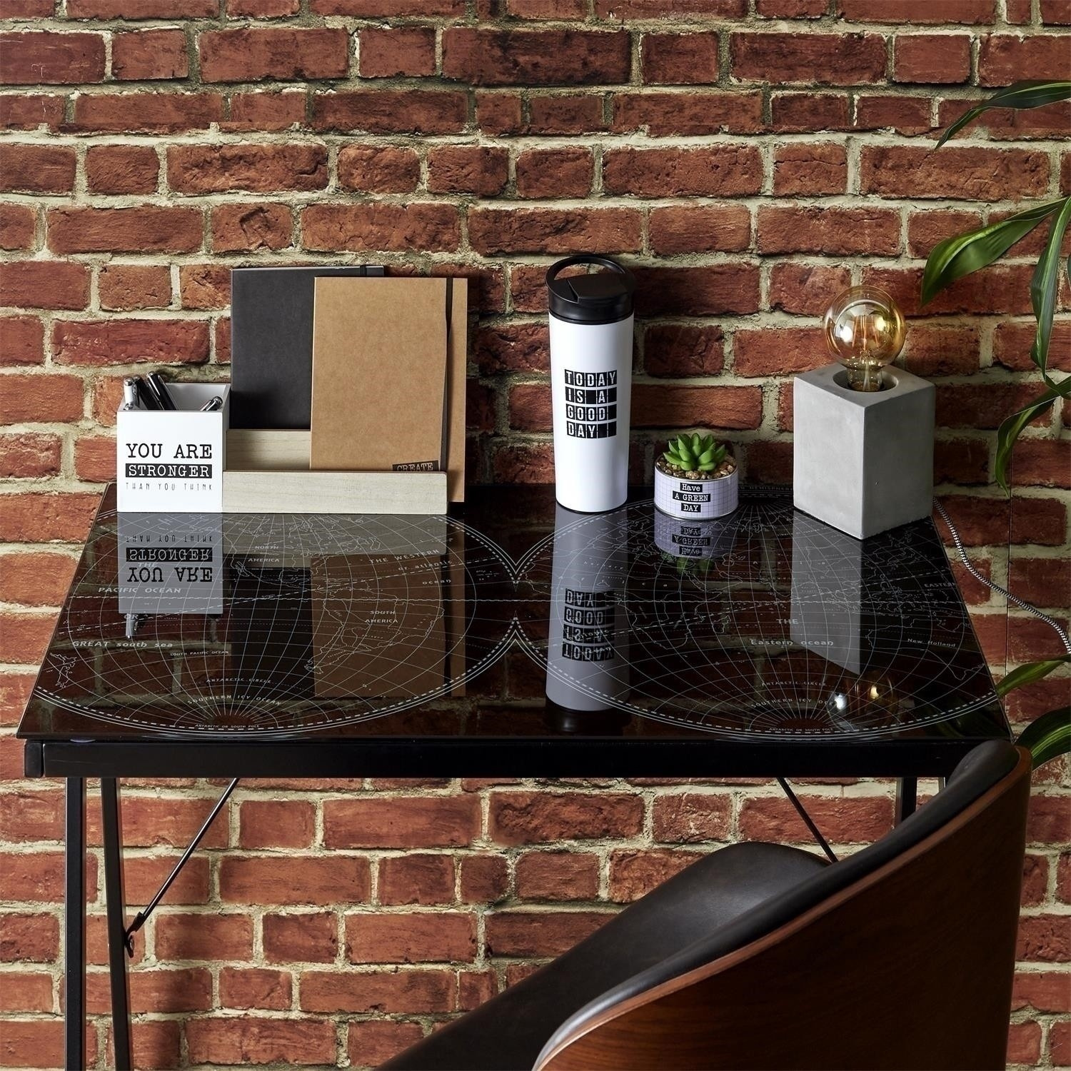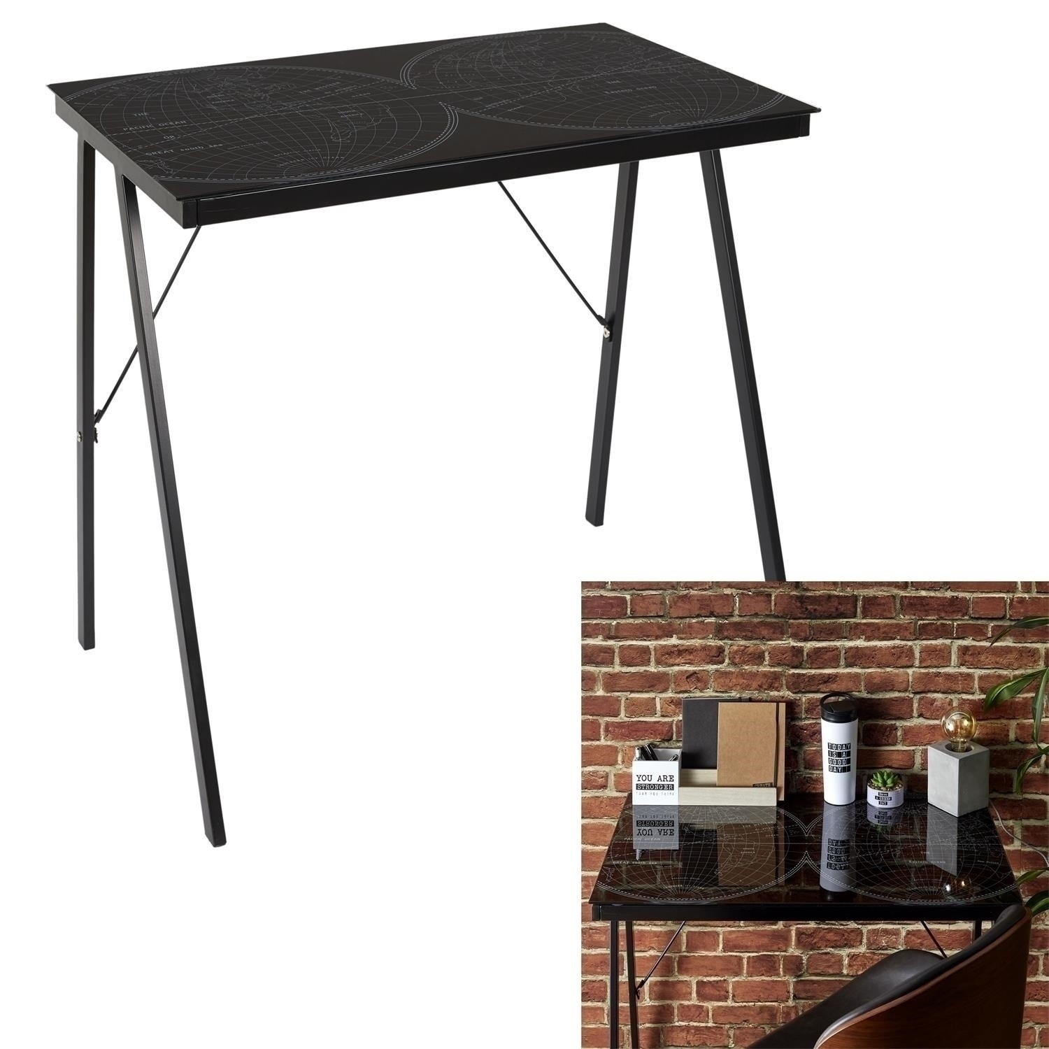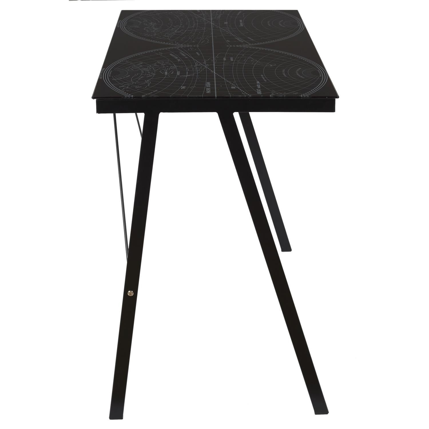 Mládežnícky stôl Navigo je vynikajúci nábytok nielen na hranie hier, ale aj na učenie. Robenie domácich úloh pri štýlovom čiernom stole bude určite príjemnejšie. Jednoduchá nenápadná forma stola z neho robí nadčasový a univerzálny kus. Čierna sklenená doska bola ozdobená grafikou s mapou sveta. Celú konštrukciu podopierajú čierne, práškovo lakované nohy. Za písacím stolom boli dodatočne umiestnené podpery, ktoré stabilizujú nábytok. Rozmery balenia: 8,5x56x87 cm Hmotnosť: 11 kg