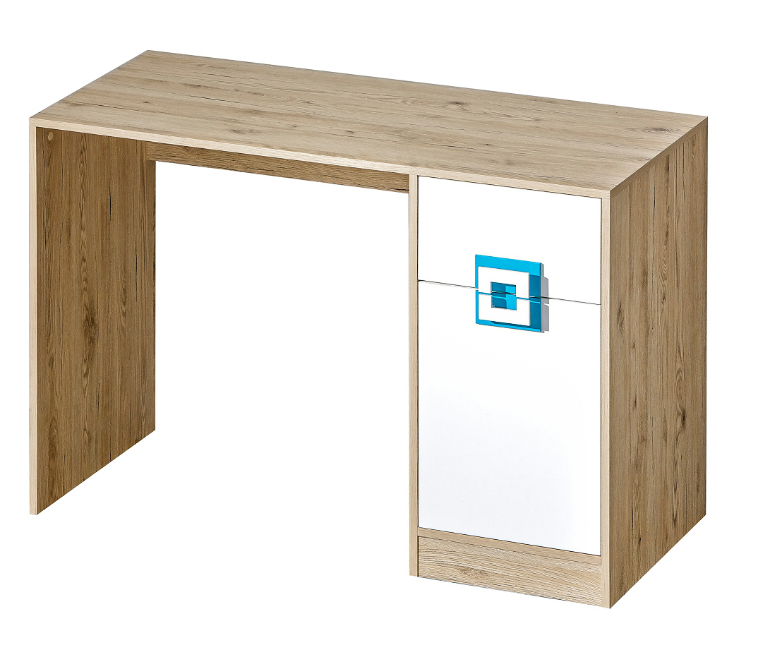 Písací stôl NICO 10, Svetlý Dub/Biela/Tyrkysová