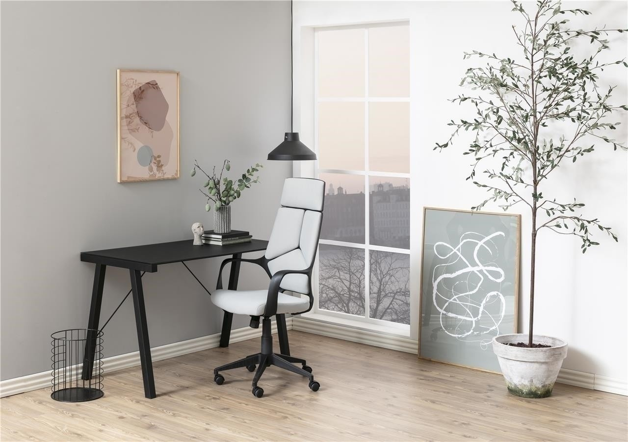 Písací stôl Typhoon bol vyrobený z pevných materiálov. Matná doska z čierneho tvrdeného skla a lakovaná čierna kovová základňa sú zárukou pevnosti a precíznosti. Doska s hrúbkou 8 mm je mimoriadne odolná proti poškriabaniu. Produkt vyžaduje montáž.